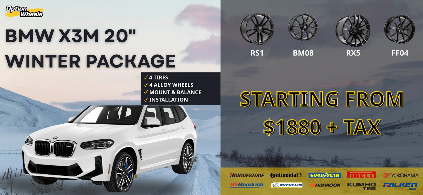βοΈ Performance-ready winter sets for BMW X3M. π° Price: Starting from $1880 + Tax βοΈ 4 Wheels + 4 Winter Tires β Balanced & Mounted βοΈ FREE In-Shop Installation (Oakville) βοΈ GTA Mobile Service β $100 Highlights: Wheels: RS RS1, RS RX5, RS BM08, OPE FF04 Tires: Michelin, Continental, Pirelli, Kumho π Option Wheels β Oakville, ON π² DM @optionwheels_ for BMW X3M packages today!