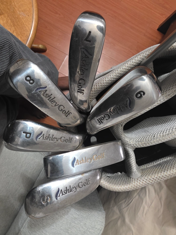 Selling a set of Ashley Golf clubs. Includes various clubs such as the 1", 5, 6, 7, 8, 9, P, and S. Great for beginners or anyone looking for a complete set!