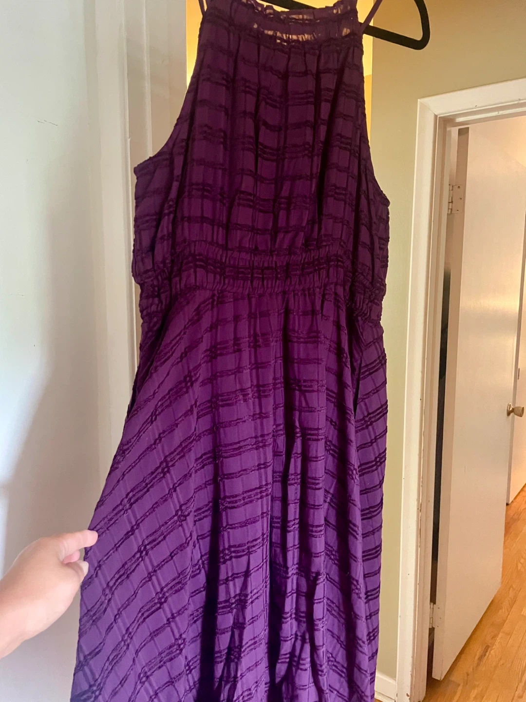 Selling a lovely purple maxi dress. It's in great condition and perfect for summer days or evenings out. The dress features a halter neckline and a comfortable, flowy fit. It's a stylish and easy-to-wear piece for any wardrobe