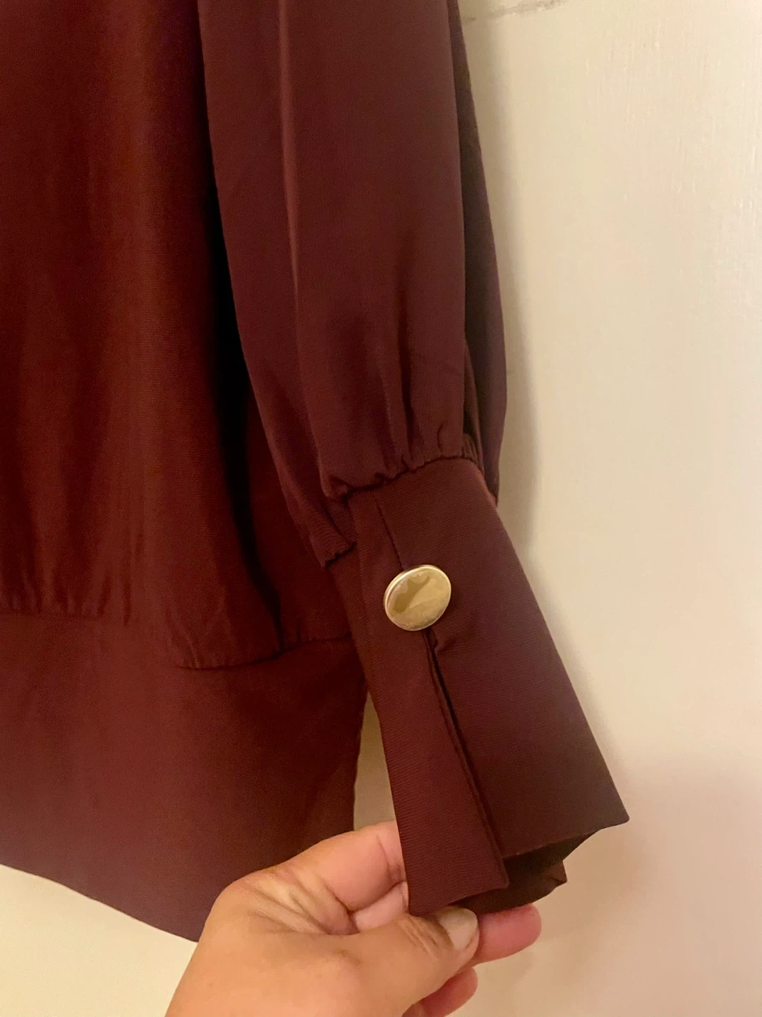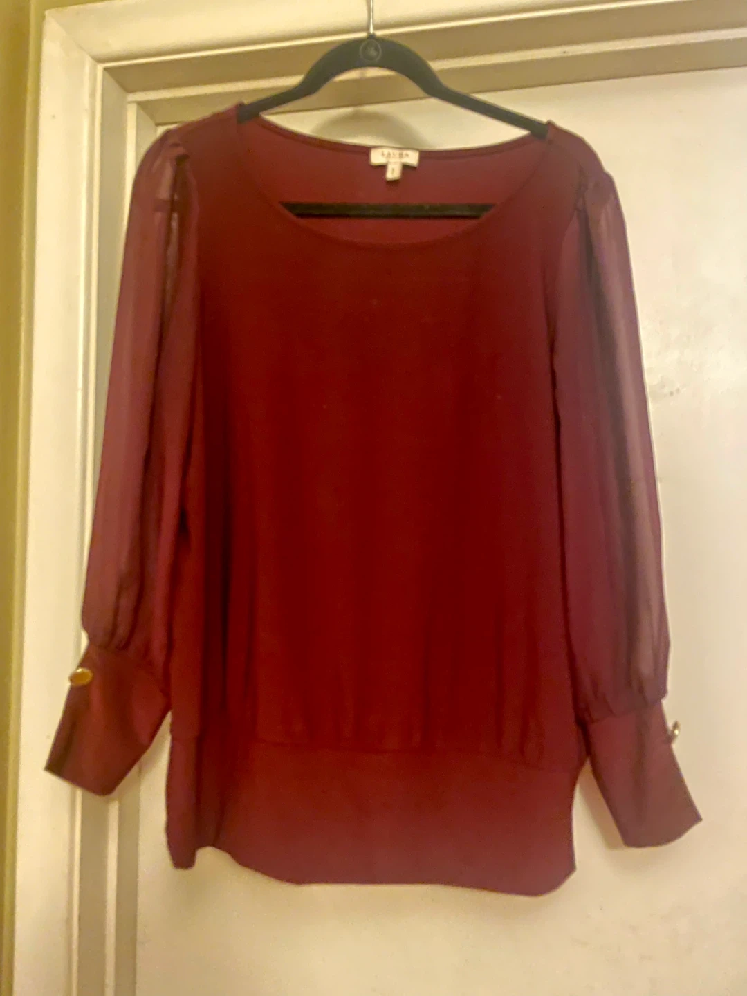 Selling a Talisa blouse in a lovely burgundy colour. It's a size large and features stylish balloon sleeves with button detailing at the cuffs. Perfect for dressing up or down!
