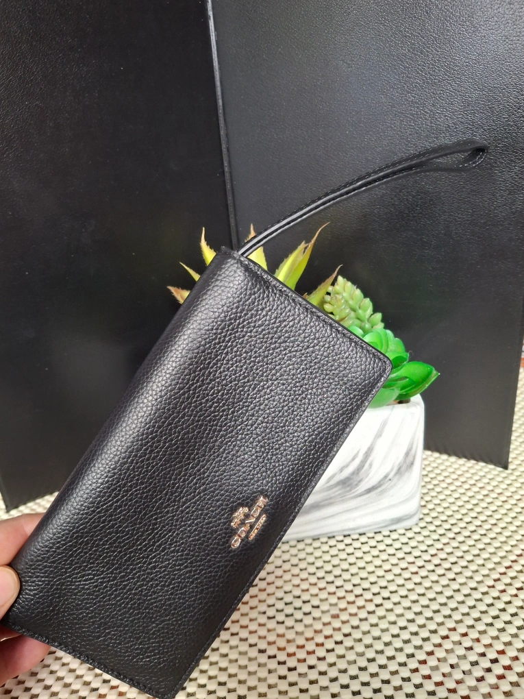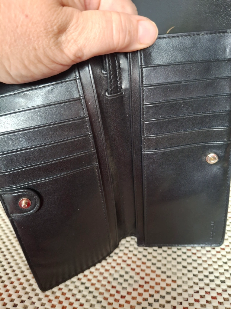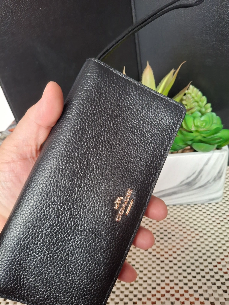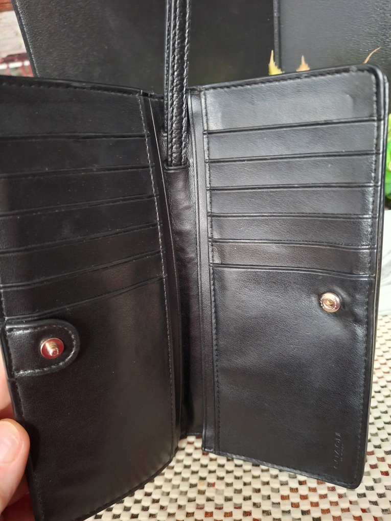 Selling a gently used Coach wallet in black leather. It's in great condition and has lots of space for cards and cash. Perfect for everyday use! 18.5cmx10cm