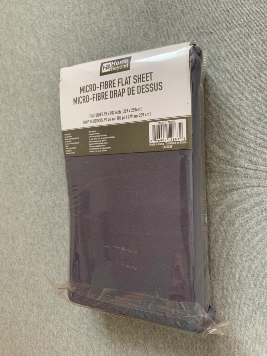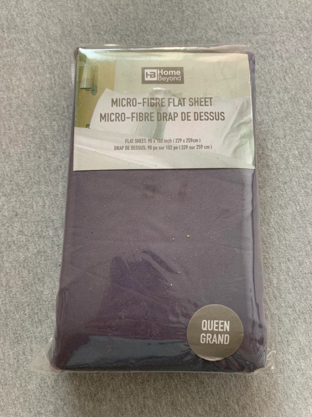Home Beyond micro-fibre flat sheet, new in its original packaging. The size is 90 x 102 inches (229 x 259 cm).