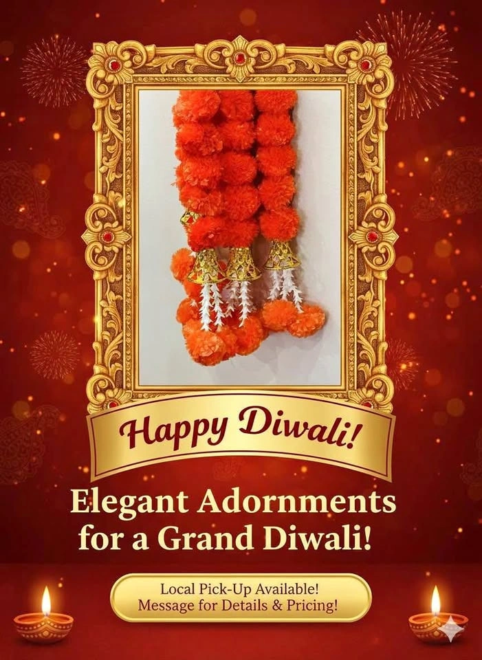 Brighten up your home, mandir, or event with our beautiful artificial marigold garlands and decorative torans. Perfect for Diwali, weddings, housewarmings, pujas, and festive celebrations. โ Handcrafted with premium quality materials โ Long-lasting, reusable & easy to maintain โ Vibrant colors that look just like fresh flowers โ Ideal for doors, walls, backdrops & stage decoration ๐ Available for pickup in Brampton ๐ฐ Many Options available ๐ฆ Bulk orders also available