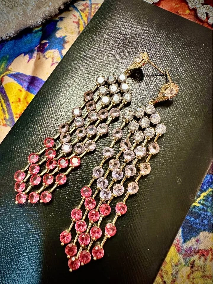 Step into the spotlight with these dazzling earrings, featuring a unique blend of deep and light pink crystals paired with radiant white crystals. Inspired by the elegance of Hollywood stars, this luxurious design will elevate your style for any occasion. Key Features: • Healing Properties: Pink crystals symbolize love and emotional healing, while white crystals promote clarity and balance. Together, they create a harmonious energy that enhances your confidence and charm. • Star-Quality Design: The cascading crystal arrangement frames your face beautifully, complementing all face shapes and hair colors for a refined and glamorous look. • Hypoallergenic Silver Posts: Designed with silver needles to ensure comfort and prevent irritation, perfect for sensitive ears. • Versatile Elegance: Whether you’re attending a casual gathering, a chic party, or a formal evening event, these earrings are the ultimate accessory to complete your outfit. 💎 Feel like a star and shine bright wherever you go! 💎