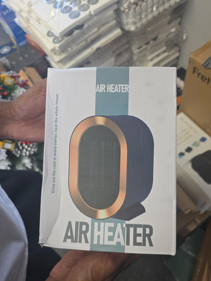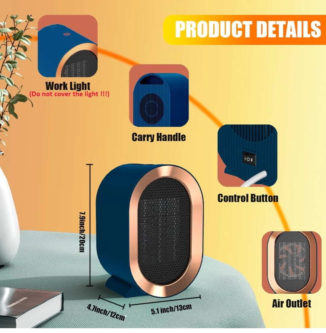 Stay warm with this portable air heater! It features a convenient carry handle and a control button for easy operation. The compact design makes it perfect for any corner of the house. It also has a work light.