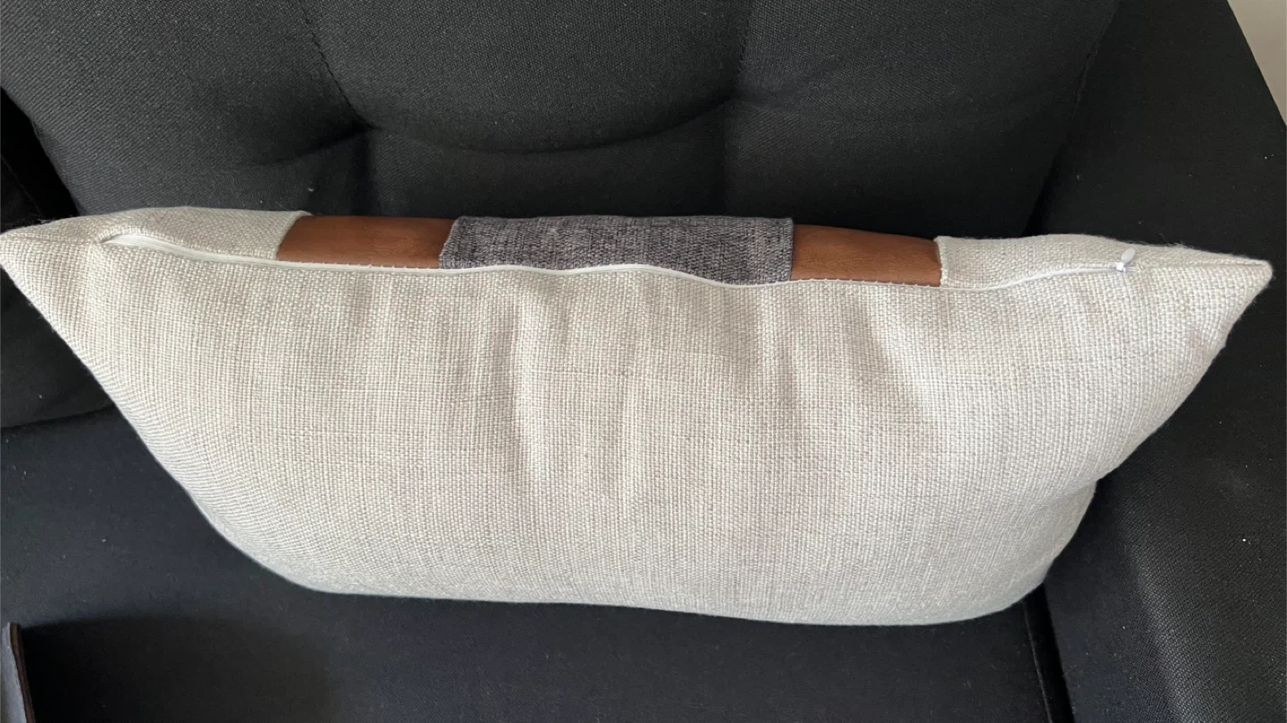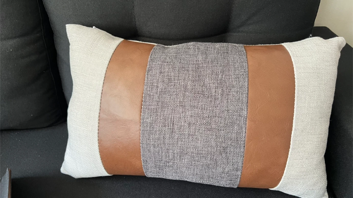 Add a touch of style to your living space with this decorative lumbar pillow! It features a mix of brown, grey, and cream colours, making it a versatile piece to complement any decor. The pillow is new