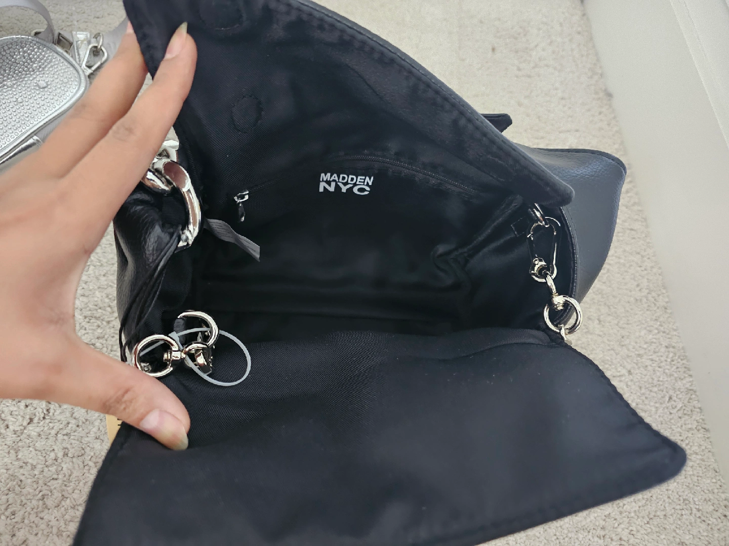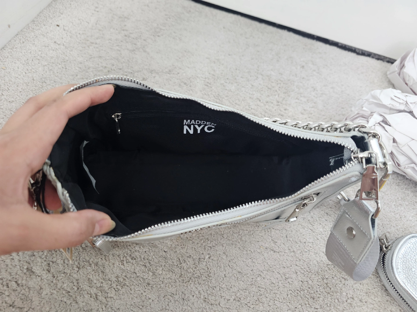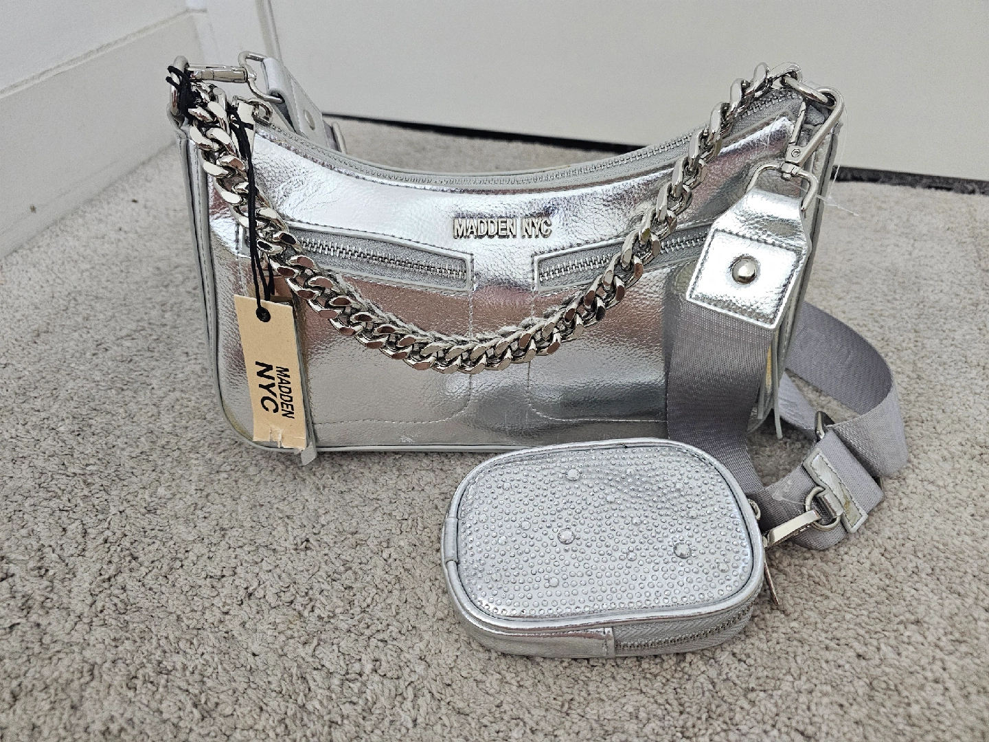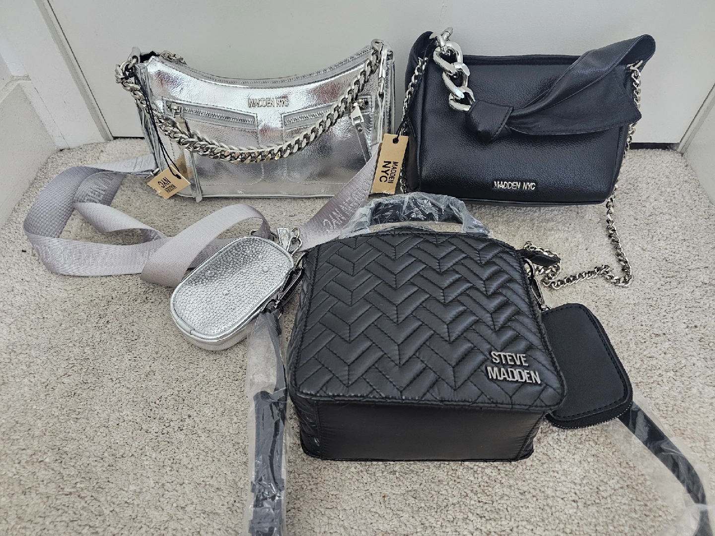 Selling bundle of 3 brand new bags Black quilted is Steven Madden Silver and other black are Madden NYC. SELLING AS BUNDLE ONLY