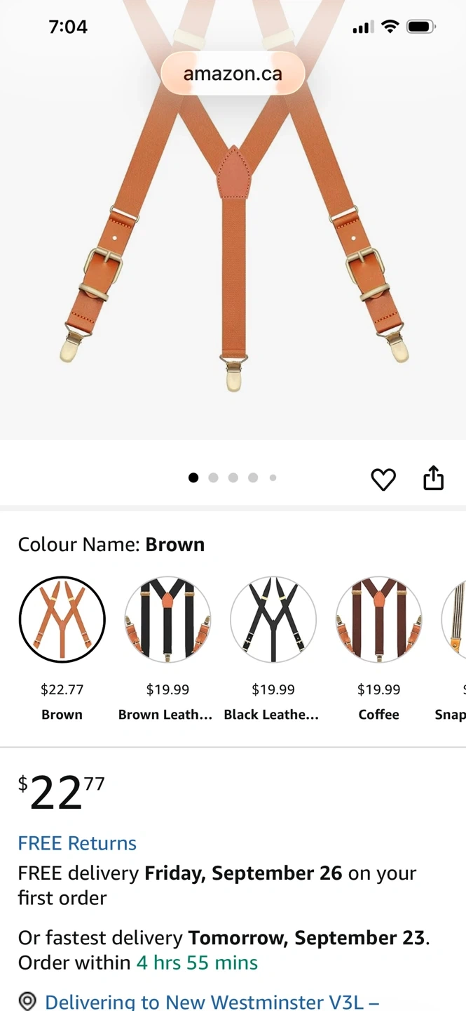 Suspenders Selling a pair of brown leather suspenders. They appear to be in good condition and are perfect for adding a touch of style to any outfit. - Adjustable - check the measurements Pick up in new Westminster Firm price!