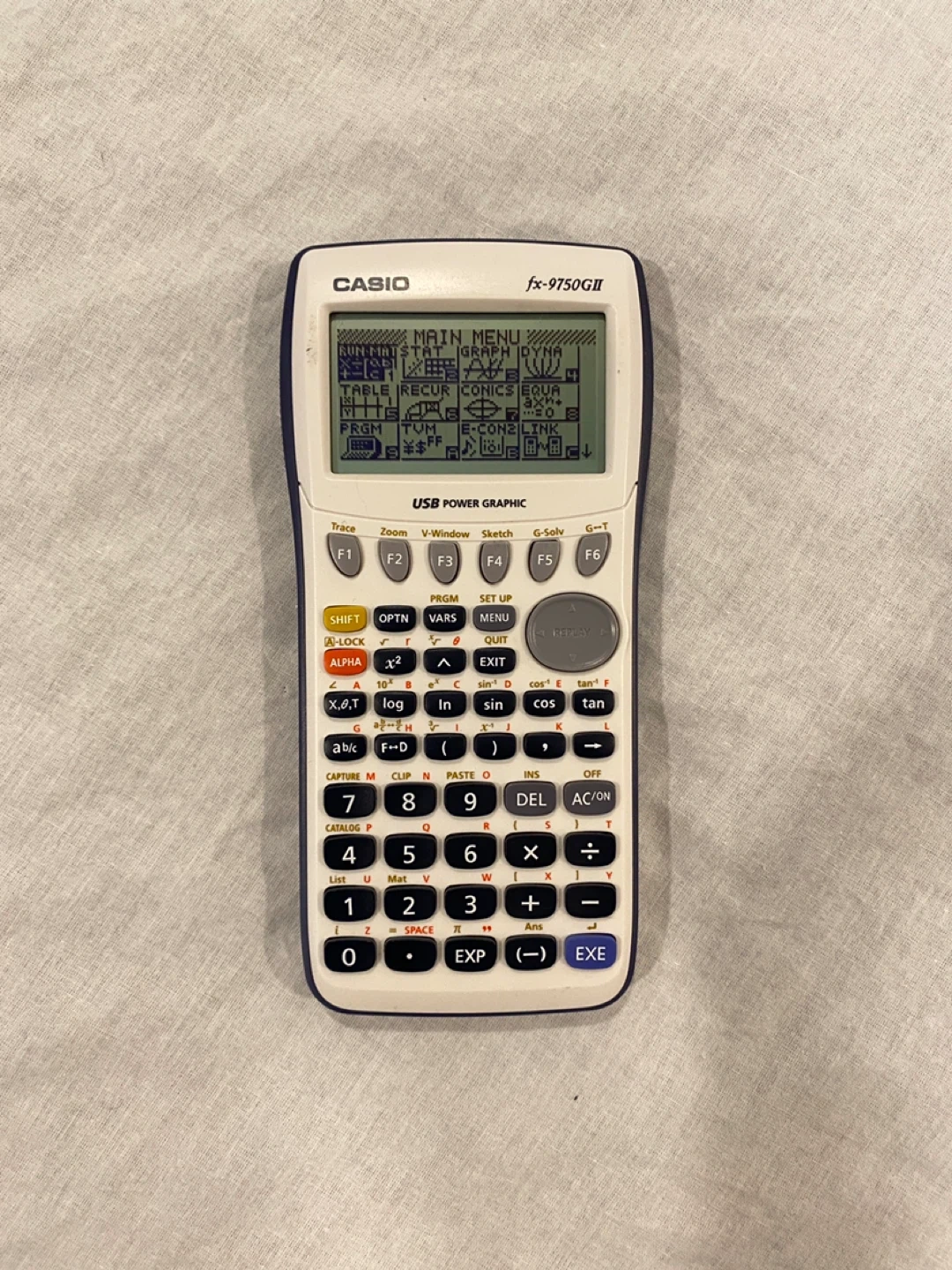 Selling a Casio fx-9750GII USB Power Graphic calculator with a cover. It's in great condition and well taken care of - ready for your next school year!