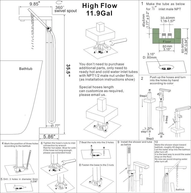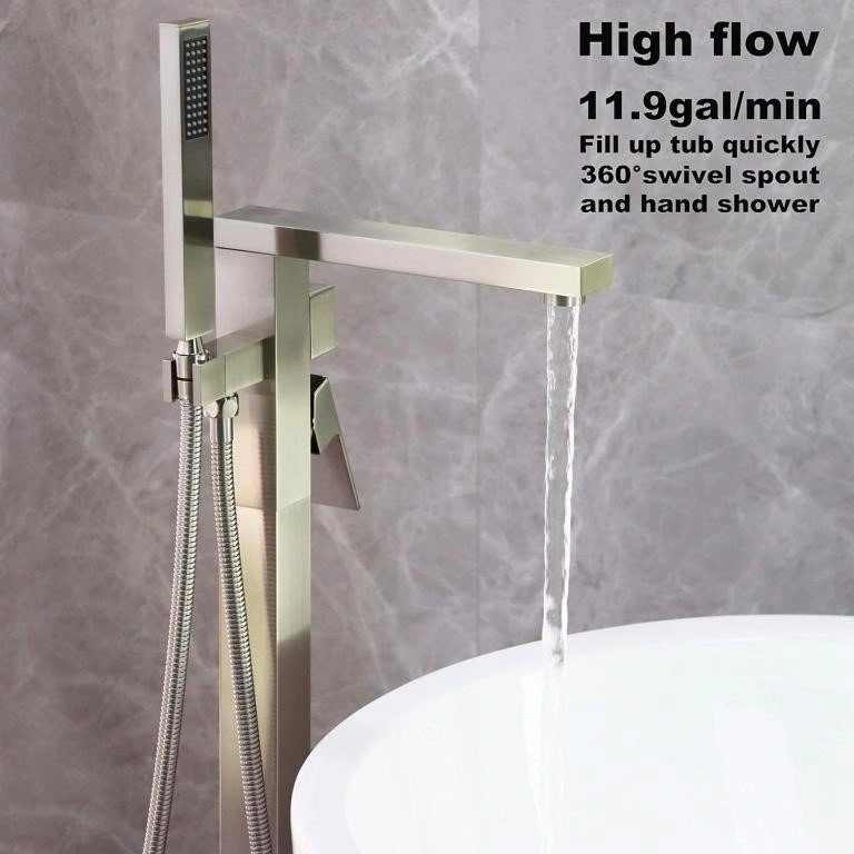 RETAIL: $500+TAX Sealed-LLGG Freestanding Tub Faucets Brushed Nickel Bathtub Fillers For Floor Mount Tubs Bathtubs Mounted Faucet Filler High Flow 11.9GPM Bathroom With Handheld Shower REF:150-DHI1212-30R9S1