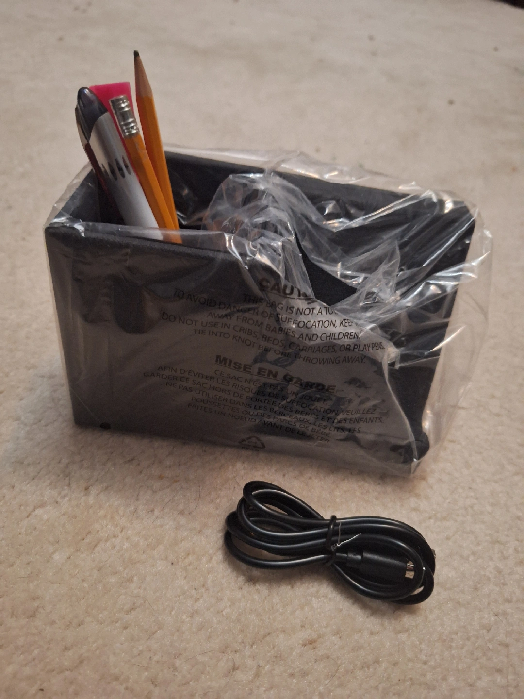Selling a black desk organizer, still in its original packaging! It comes with a charger as well, perfect for keeping your workspace tidy and your devices powered up