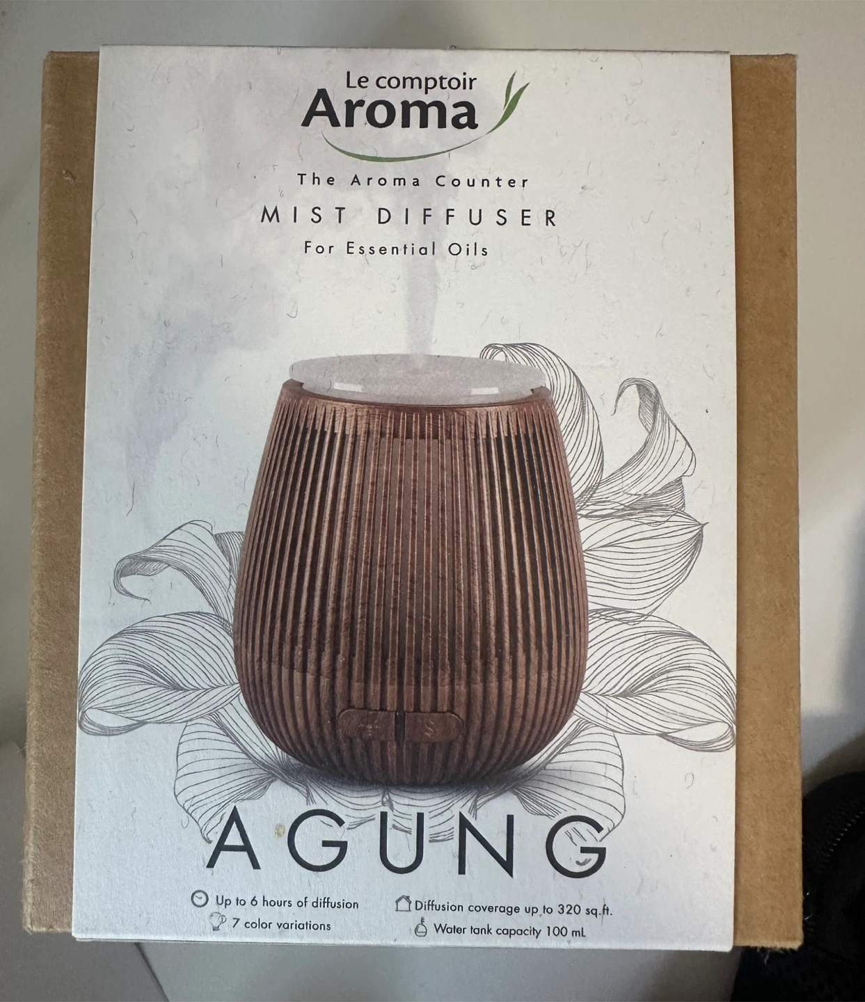 I'm selling a Le comptoir Aroma mist diffuser for essential oils! It's the Agung model. It has a diffusion coverage of up to 320 sq ft and a water tank capacity of 100 mL. It can diffuse for up to 6 hours and has 7 colour variations. Retails for $57.99