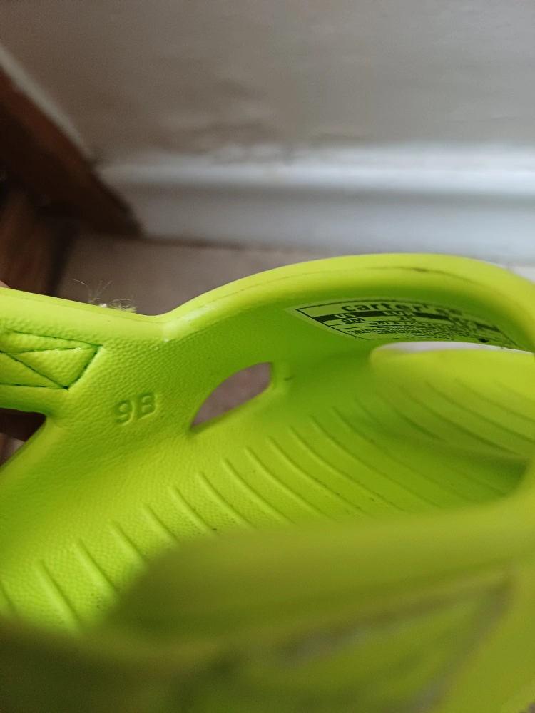 FREE pair of Carter's sandals in a bright green colour! They are size 9B and have some wear on the soles, but are still in good condition for your little one to wear