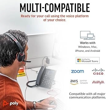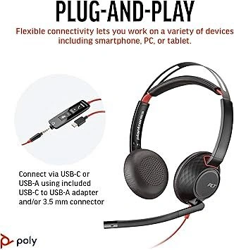Brand new in Box Poly Blackwire 5220 Wired Headset (Plantronics) - Flexible Noise-Canceling Boom Mic - Ergonomic Design - Connect to PC/Mac, Mobile via USB-C, USB-A, or 3.5 mm - Works w/Teams, Zoom Easily move between devices with a wired headset that lets you connect to your PC or Mac using the USB-C cord or the included USB-C to USB-A adapter and/or to a mobile phone via a 3.5 mm connection jack. Colour black Model name Plantronics Poly Blackwire 5220 Wired Headset New in Amazon selling at $100 + taxes BRAND NEW - NOT USED NOT FREE - DM for Prices.
