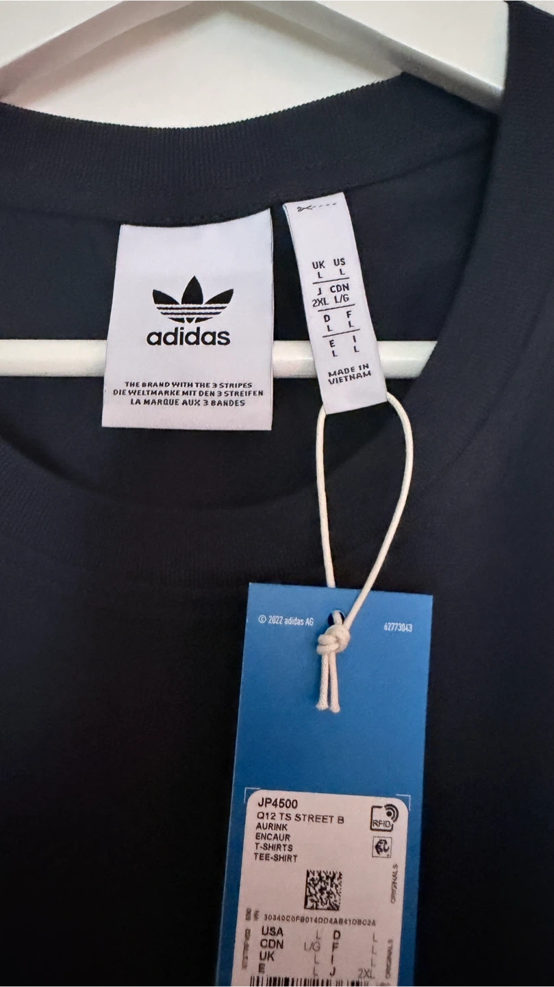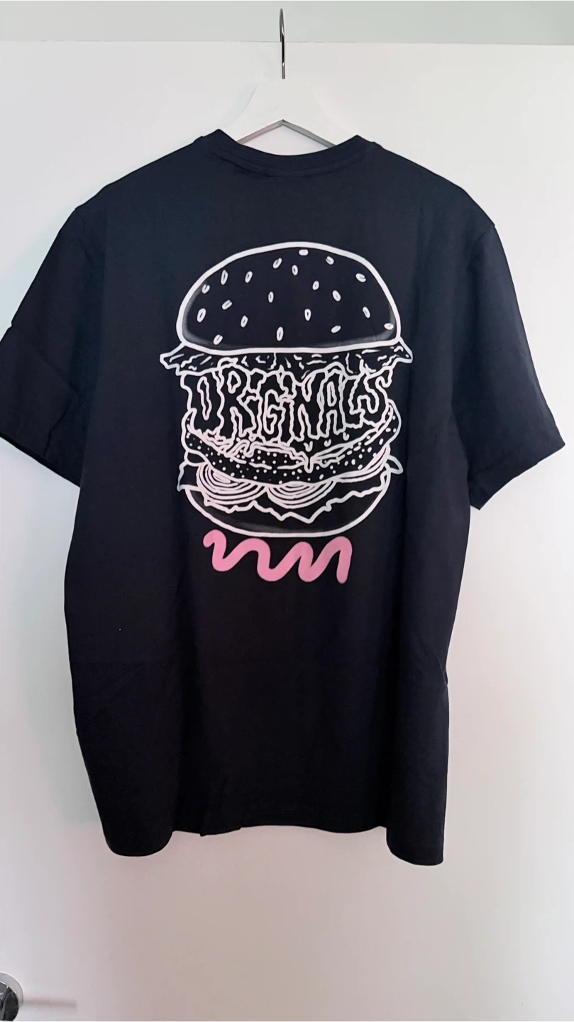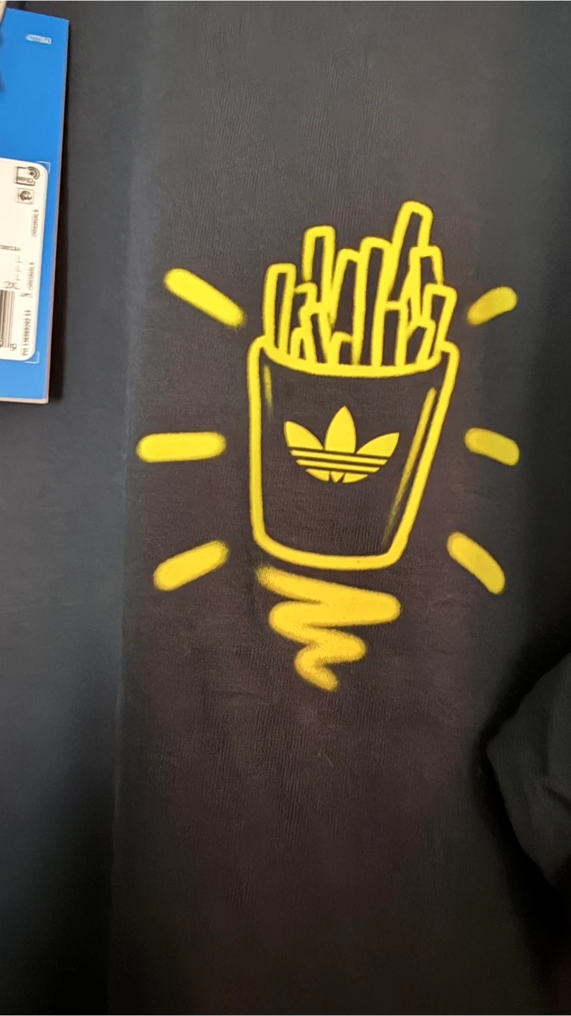 Selling an Adidas Originals Aurink Burger T-shirt! It's a black t-shirt with a fun burger graphic on the back and a fries graphic on the front. The size is L (Large). Never Worn. Tags on