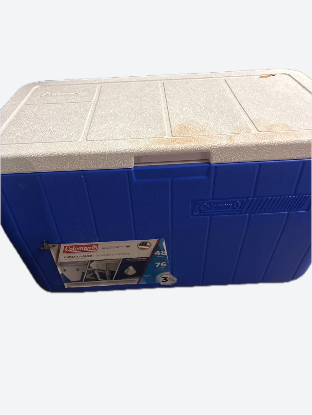 Selling a Coleman chest cooler, perfect for keeping your drinks and snacks cold on those hot summer days! It's a 48-quart cooler, so it's got plenty of space.
