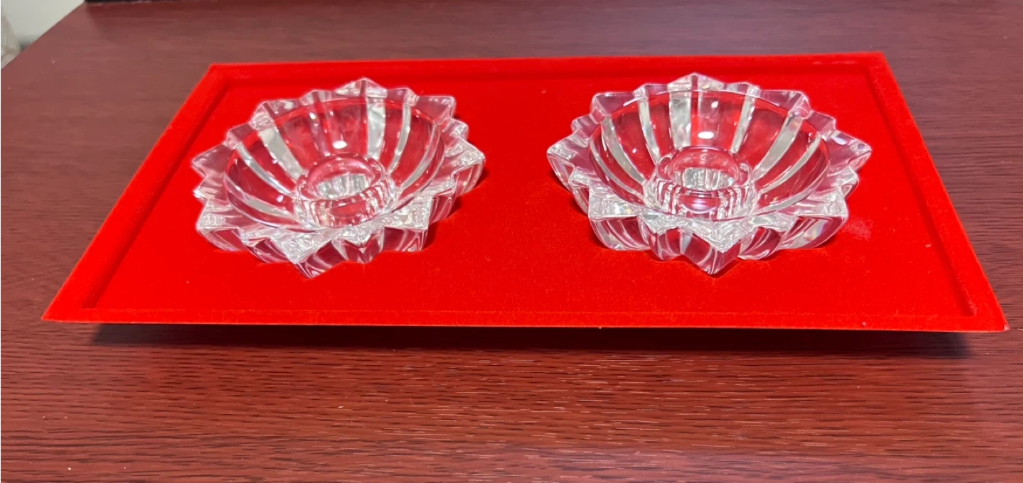 Selling a set of two lovely crystal candle holders. They have a beautiful flower design and would look great in any home. Perfect for adding a touch of elegance to your decor!