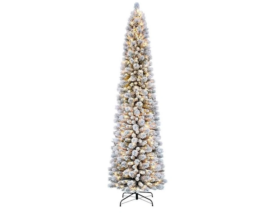 Bring the beauty of a winter wonderland into your home without sacrificing space! This slim, pencil-style Christmas tree is designed to fit perfectly in apartments, condos, and cozy corners where a full tree might feel overwhelming. Standing at 7.5 feet tall with a narrow profile, it gives you the height and elegance of a traditional tree while taking up minimal floor space. The tree comes pre-lit with clear lights for easy setup—just plug it in, decorate, and enjoy the warm holiday glow. Its flocked, snow-dusted branches create a magical, freshly fallen snow look that brings festive charm to any room. BRAND NEW—hasn’t even been removed from the box!