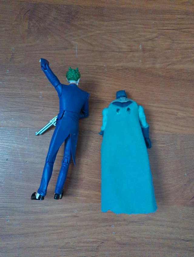 I am selling a set of used DC Comics Batman and Joker action figures. These figures are ready to add some superhero (and supervillain) fun to your collection. As they've been part of my display, I'm hoping they'll find a new home where they can be appreciated! * Characters: Batman and The Joker * Franchise: DC Comics * Figures show wear and tear consistent with being used. Act fast – if you're reading this, they're still available!