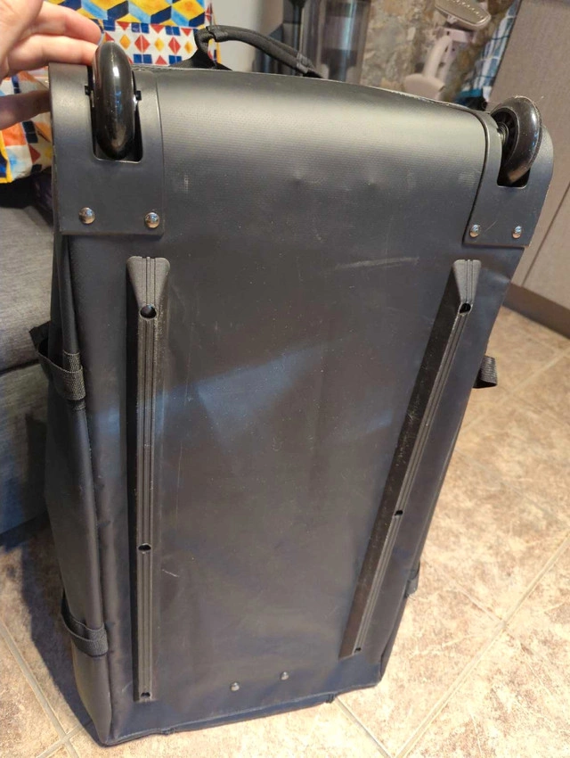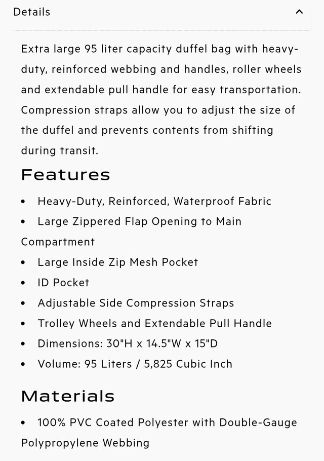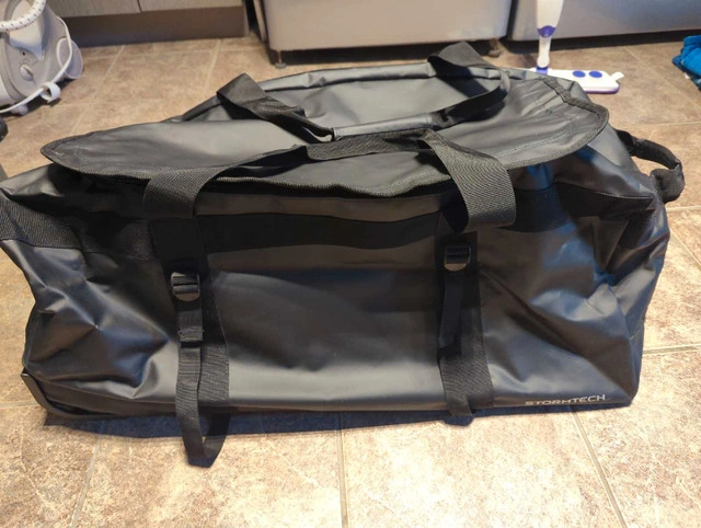 This Stormtech Model:GBW-2 rolling duffel bag is a great choice for travel, gym, or sports, offering both convenience and durability. It features a spacious main compartment, sturdy wheels, and a retractable handle for easy transportation. The bag is in like new condition and ready for your next adventure. Here are some additional details: * Durable construction * Retractable handle * Smooth-rolling wheels * Multiple carrying straps * Large main compartment Serious inquiries only, please.