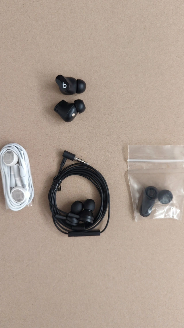 Beats Studio Buds True Wireless Noise Cancelling Earbuds Compatible with Apple & Android. No charging case, only earbuds - $ 40, Wired Earphones 3.5mm Jack White - $ 10, BLACKBERRY WS-510 STEREO HEADSET HEADPHONES Porsche Design - $10, Or all for $50