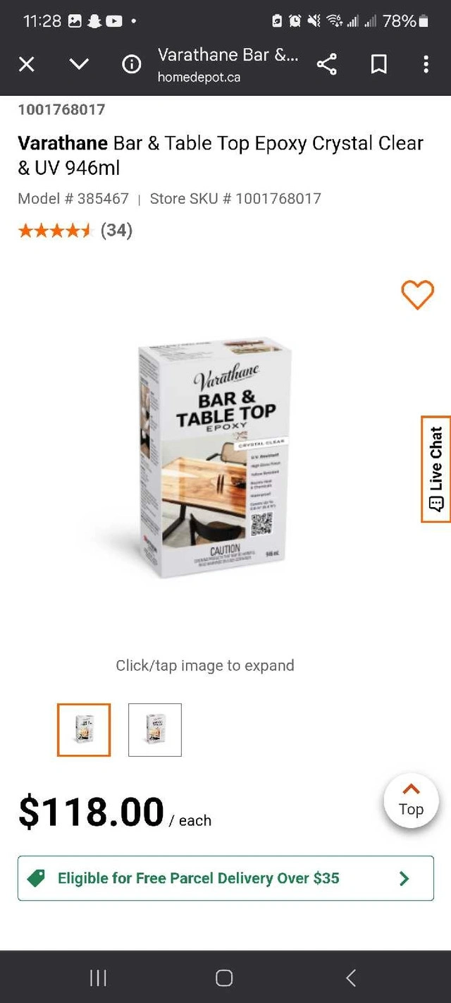 Varathane Bar & Table Crystal Clear & UV is an epoxy resin that is formulated with UV resistant and a pure Crystal Clear appearance. This pourable epoxy delivers a high-gloss finish that is as thick as 75 coats of varnish. It leaves your surface durable, waterproof and resistant to heat and chemicals. Improved Hardness & Chemical Resistance Easy to use, Low odour High gloss finish that resists scratching and yellowing. I have a lot. $15 each or 10 for $100. Buy in bulk and save!