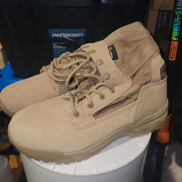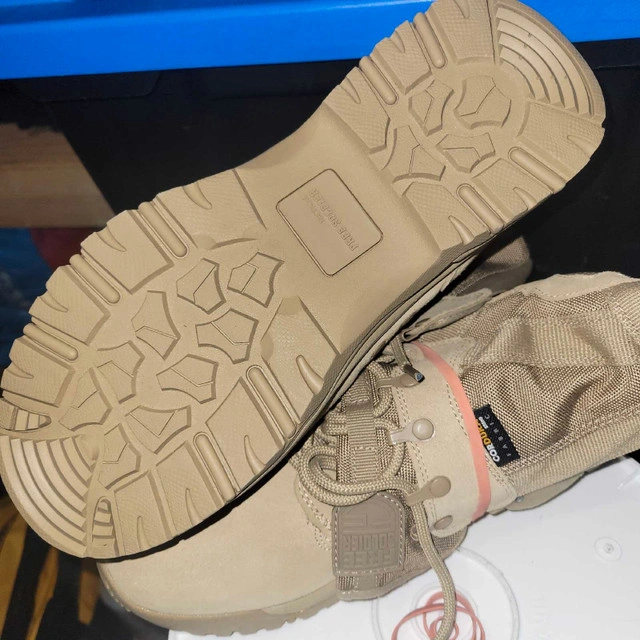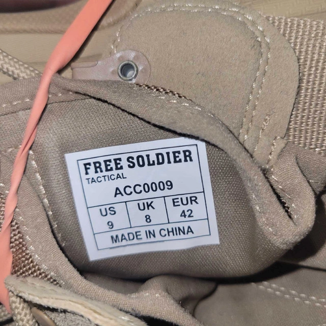 SIZE 9 MENS These are new FREE SOLDIER Men's Tactical Boots, sized at 8 inches and designed to be lightweight. Ideal for anyone needing reliable and comfortable footwear. Here are some specs: * Brand: FREE SOLDIER * Type: Tactical Boot * Height: 8 inches * Colour: Tan * Lightweight design Looking around Kijiji, similar boots tend to sell in the $80-$120 range, so I've priced these competitively. If the ad's still up, the boots are still available—no need to ask! Happy trails!