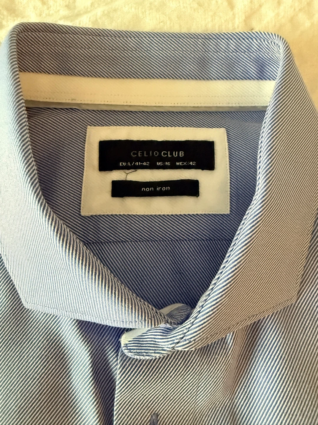 Selling a Celio Club dress shirt in great condition! The size is US 16, EU L/41-42, and MEX 42. It's a non-iron shirt, so it's super easy to care for
