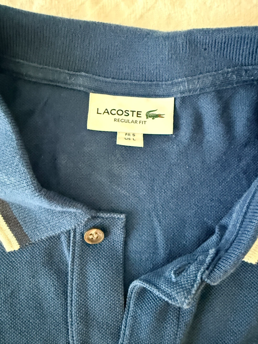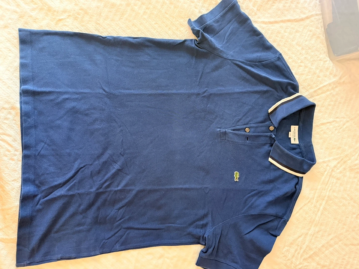 Classic Lacoste polo shirt in a nice blue colour! Perfect for a casual day out or dressing up a bit. It's in great condition and ready for a new home