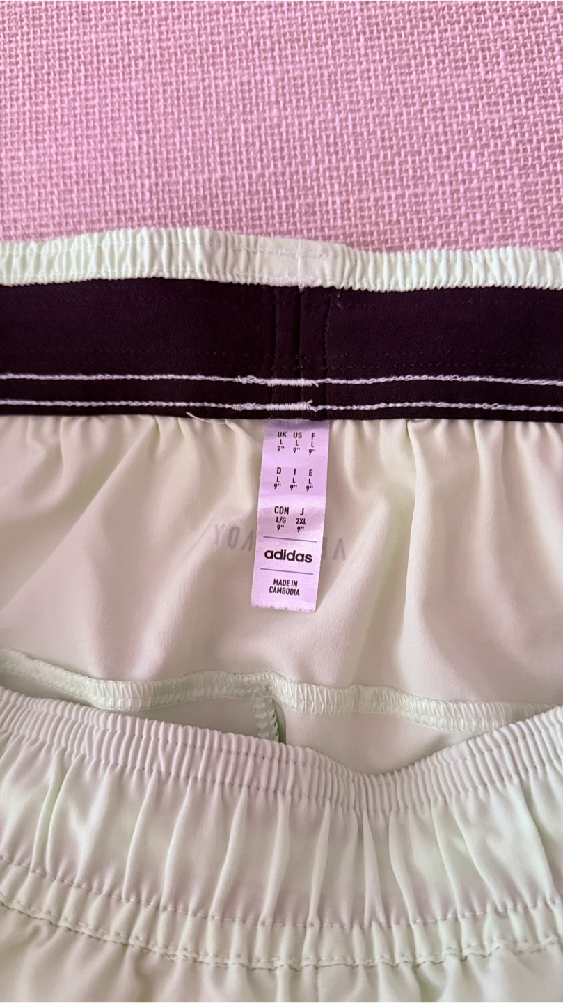 Adidas running shorts in size L. They are a light green colour and in great condition!