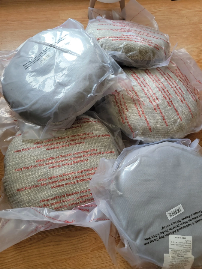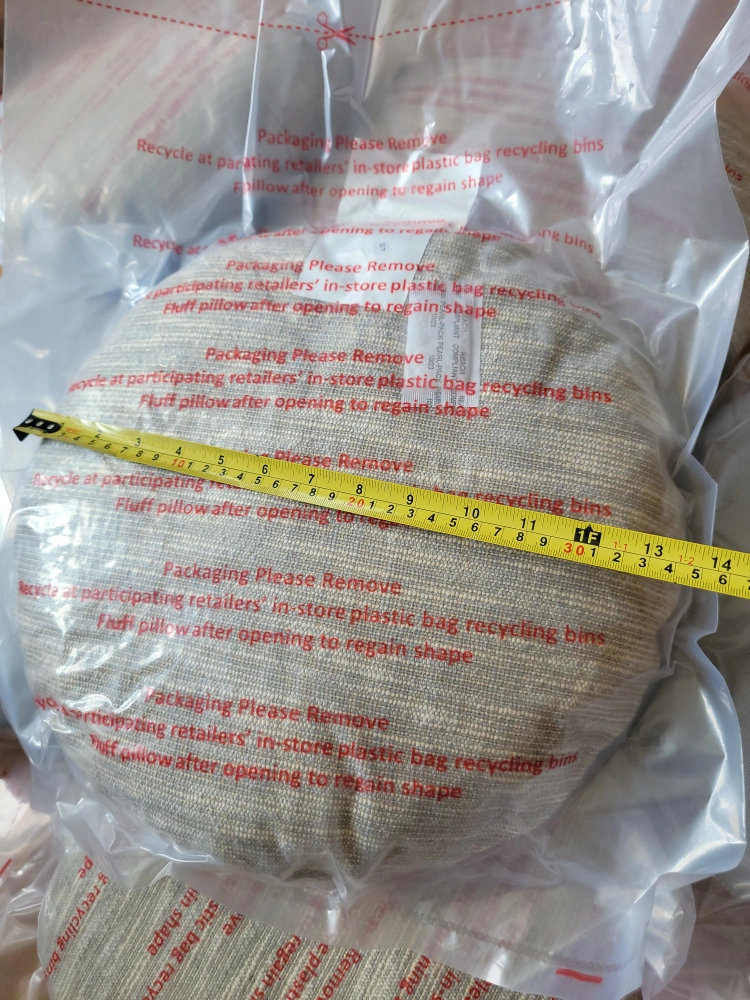 I have some brand new Threshold round pillows for sale! They are still in their original packaging. They measure approximately 14 inches in diameter. They come in neutral colours that would match any decor!
