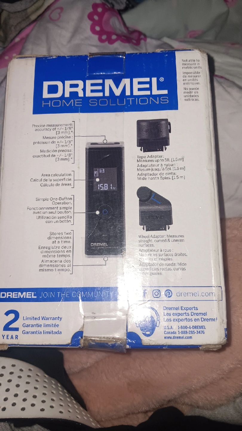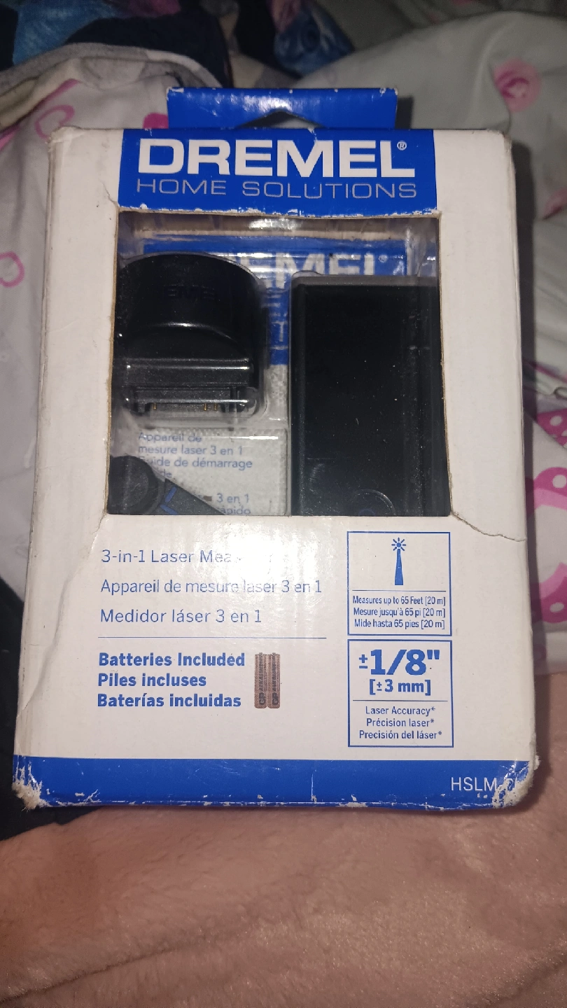 Selling a like-new Dremel HSLM-01 3-in-1 Laser Measurer! This handy tool measures up to 65 feet (20 m) and boasts a laser accuracy of ±1/8" [±3 mm]. It features precise measurement accuracy of 1/8" [3 mm] and includes batteries. The box is included and it has a 2 year limited warranty! Perfect for any DIY project or home improvement task