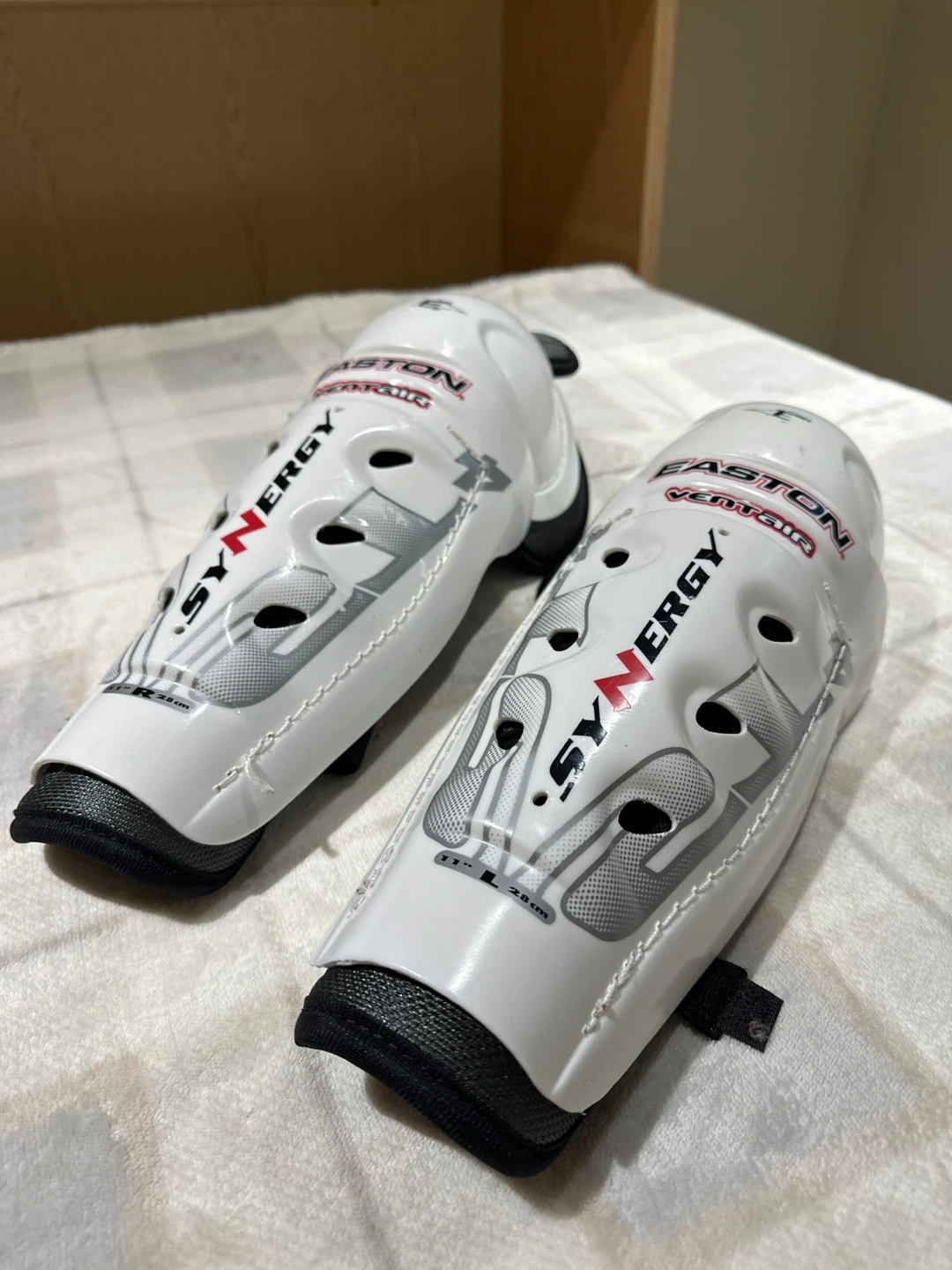 Selling a pair of Easton Synergy Vent Air shin guards in size 11 inch. They are in great condition and ready for the ice!