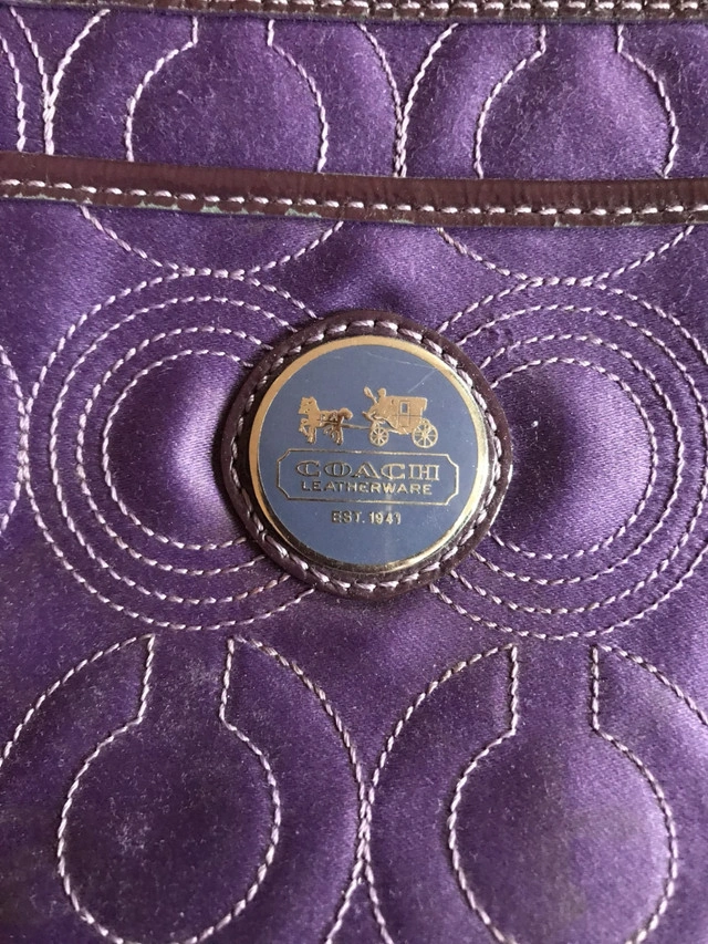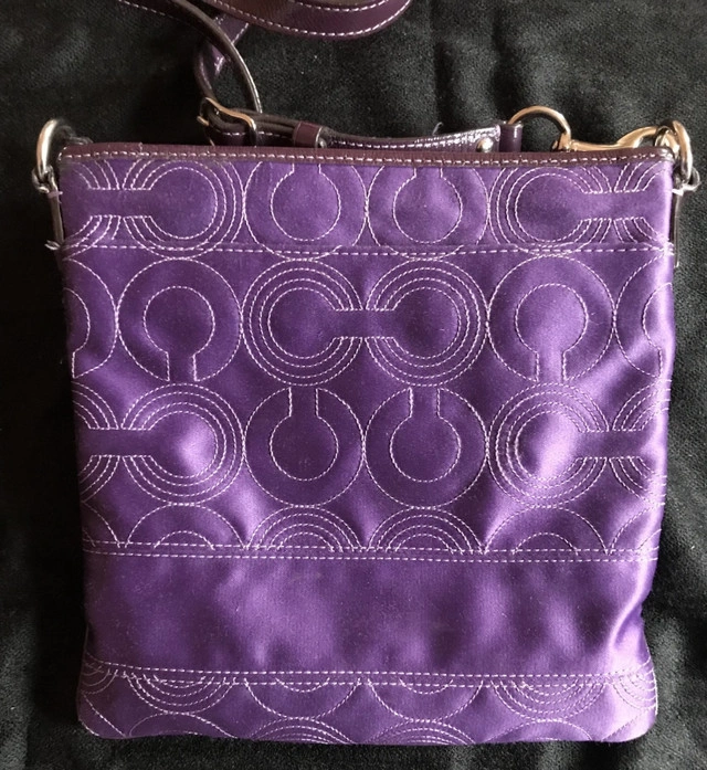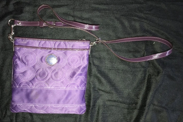 Coach Purple Crossbody Purse Handbag Pocket front & back Adjustable 26” strap 9” l x 9” w Condition: Used - Like new For Sale By: Owner Curbside pick up: Yes Cash accepted: Yes