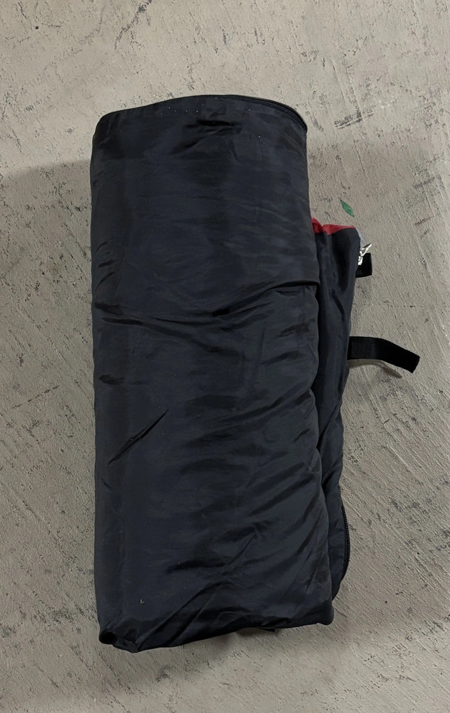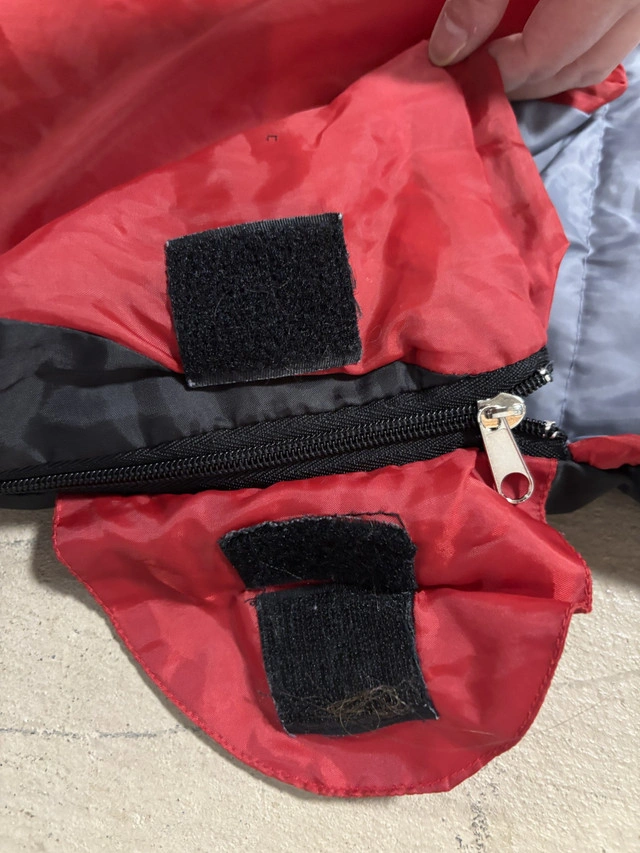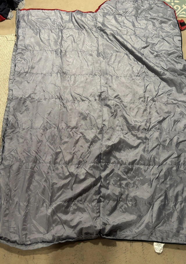 Red & black with grey interior. Full length zipper. Nylon Shell. Nylon lining. Polyester fill. 78” long 37” wide. $25 Condition: Used - Like new