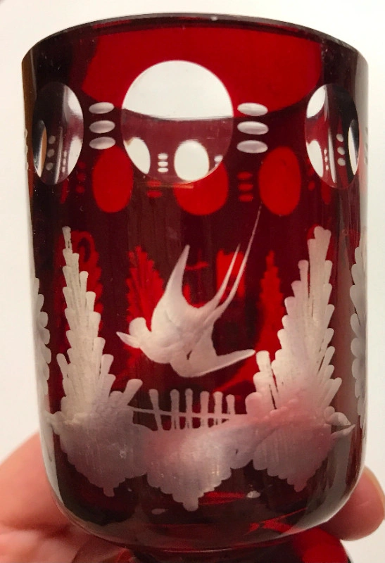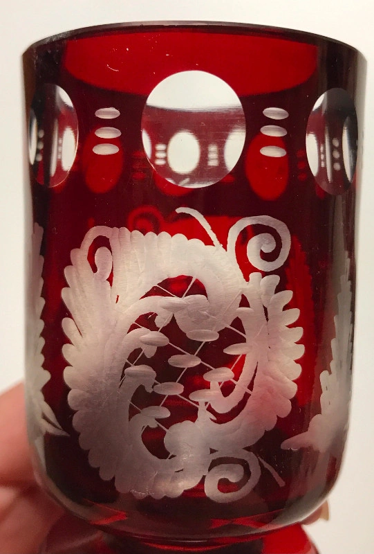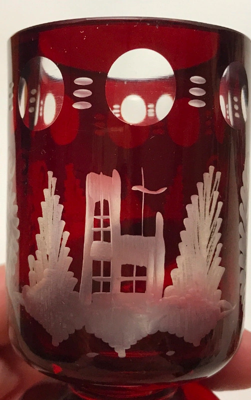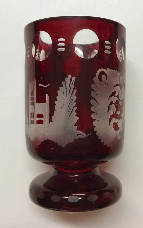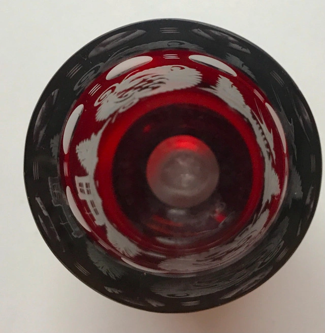 Royal Bohemia Shot Liqueur Glass antique 3.5” high 2” diameter Red burgundy Cut glass crystal Czech Vintage antique $25 Beautiful Christmas gift Condition: Used - Like new More Info: Vintage, Antiques For Sale By: Owner Curbside pick up: Yes Cash accepted: Yes