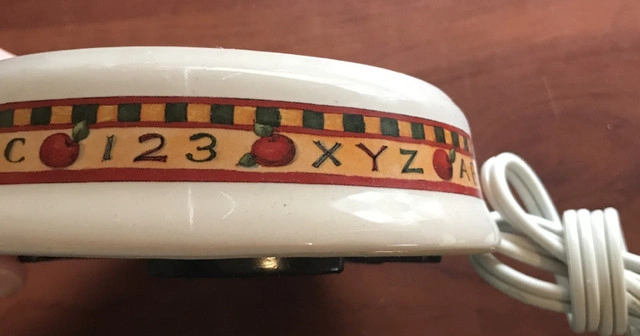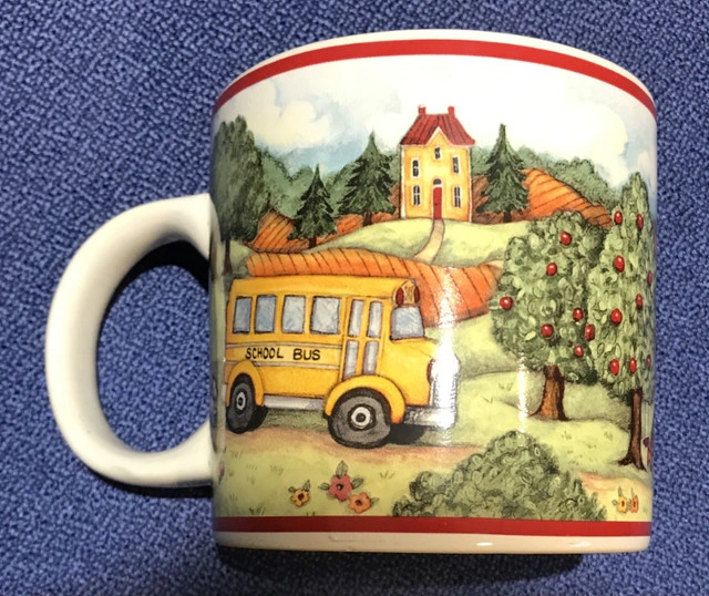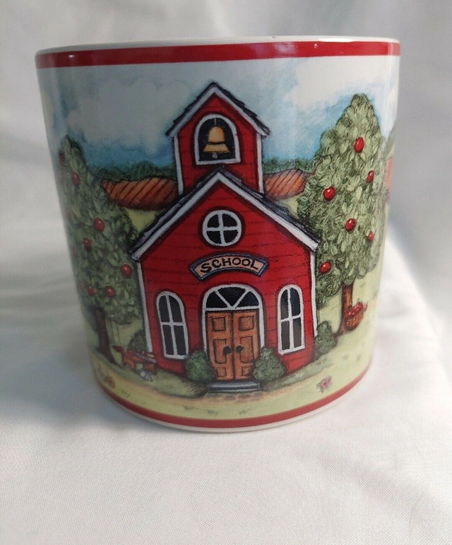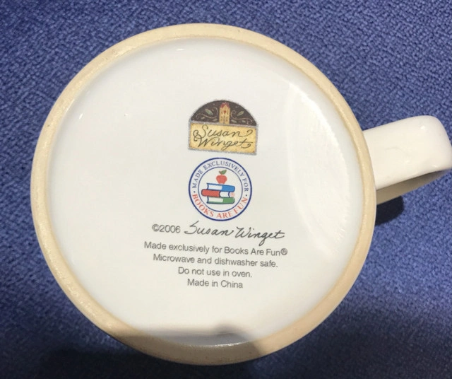 Susan Winget Books are Fun School mug. Put it on your desk & plug it in, it will keep your drinks hot. Indicator light On/Off switch. Heavy duty ceramic. Decorated border with ABC, 123, apples. Great for Teacher Christmas gift. Condition: Used - Like new