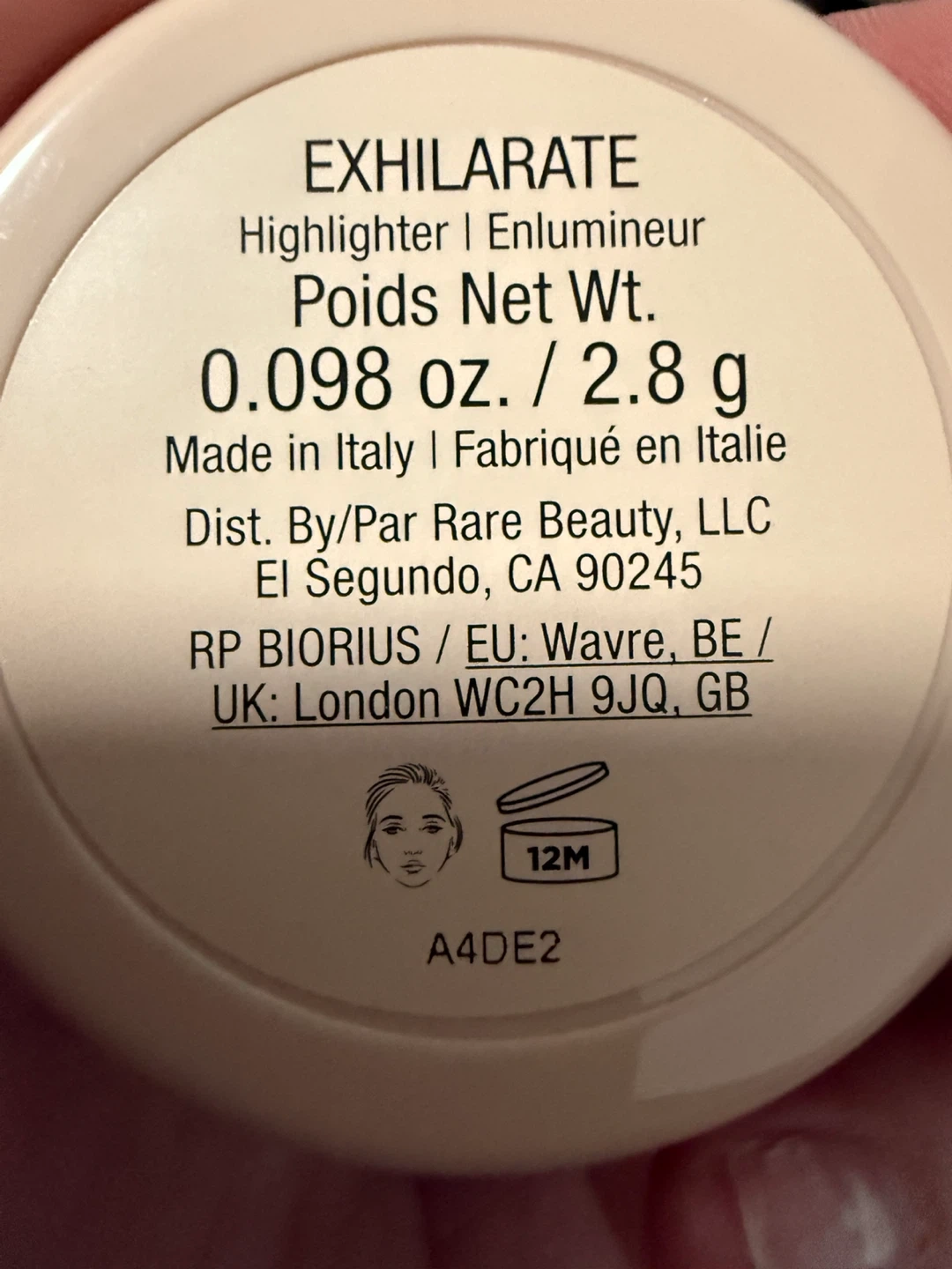 Selling a Rare Beauty highlighter in the shade Exhilarate. It's a beautiful, subtle shimmer that gives a lovely glow! The net weight is 0.098 oz / 2.8 g. Hadn’t been used.