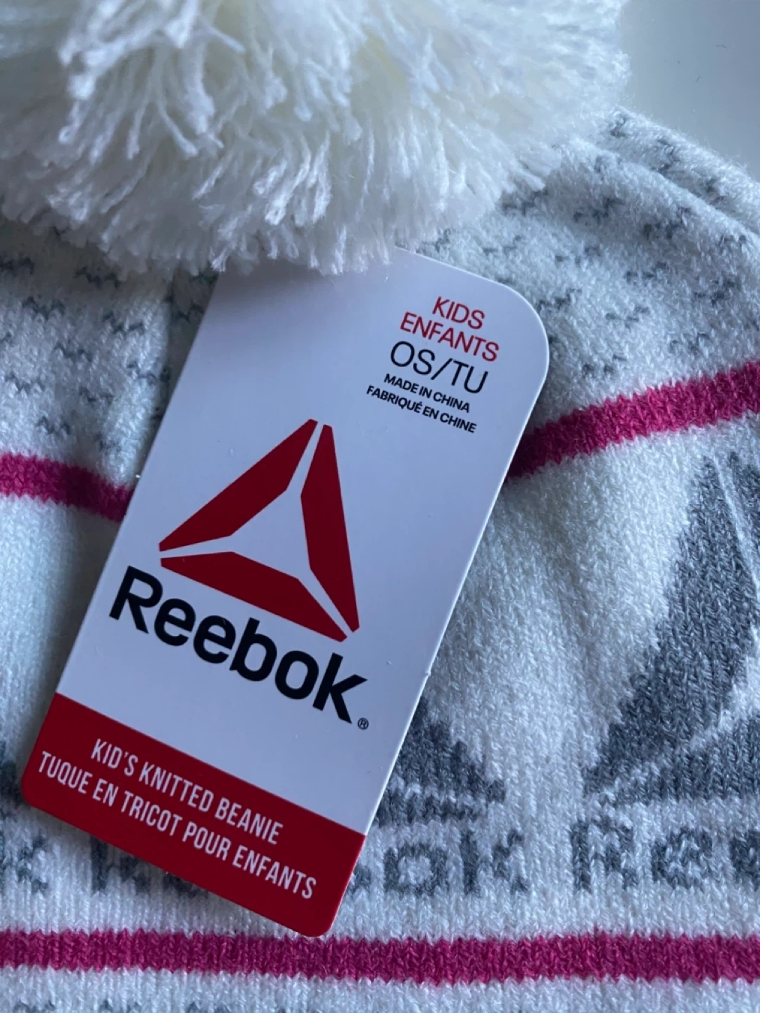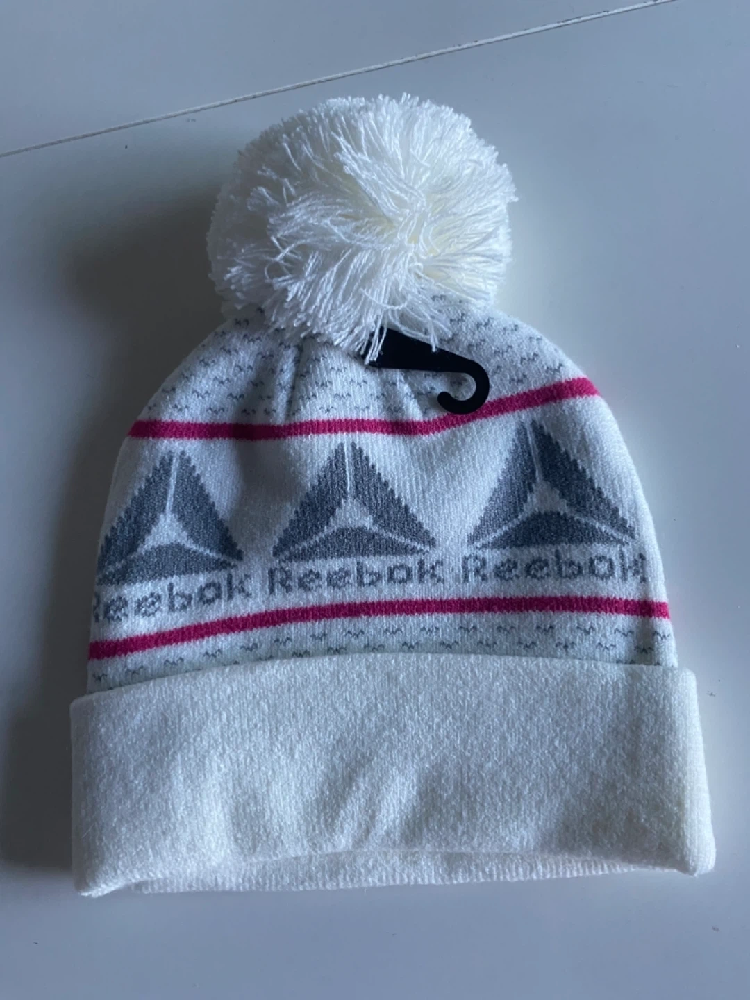 Check out this brand new Reebok kid's knitted beanie! It's a super cute toque for your little one, featuring a stylish design and a comfy fit. Size is OS/TU (one size fits all). Pick up Sage Hill Cash only Check out my other items Pet and smoke free home
