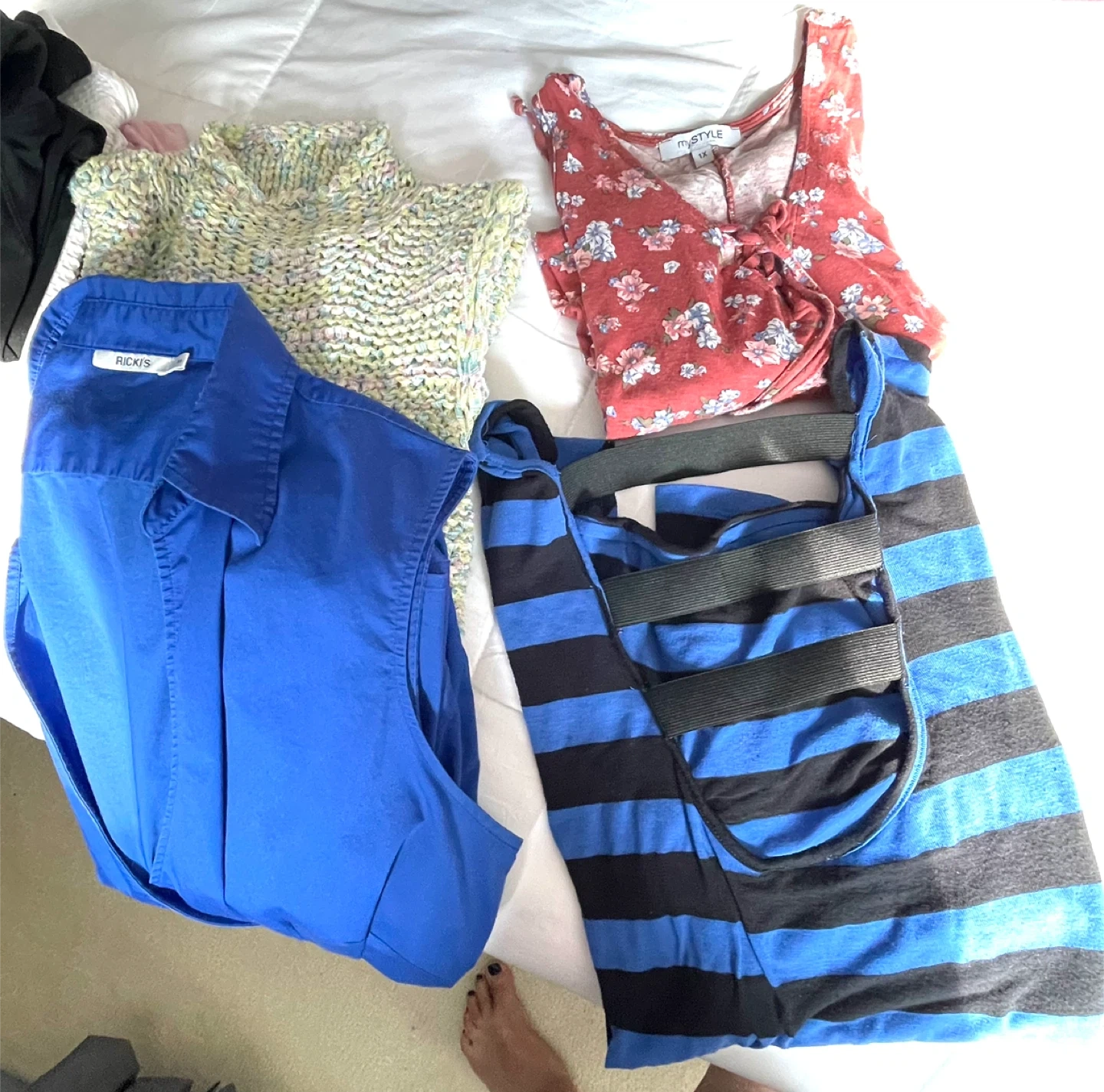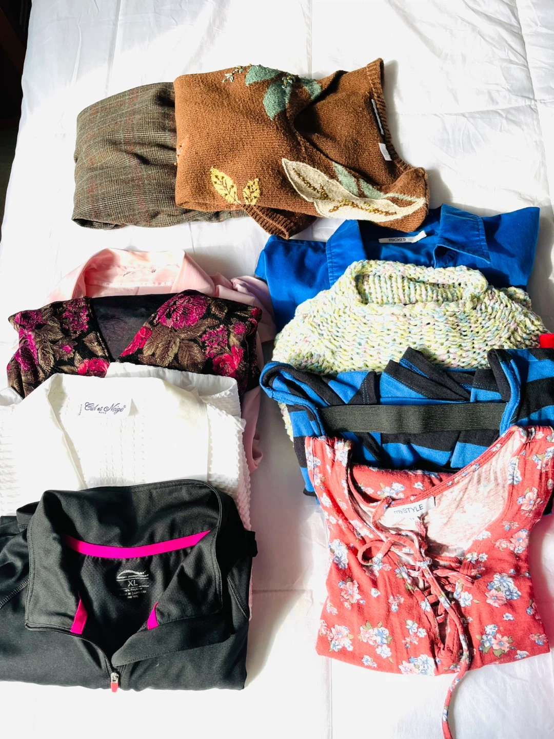 What!!! 10 items for only $10.00 4 long sleeve tops, 4 sleeveless tops, 1 short brown knit top & 1 pant. All in great condition. All fit Size XL