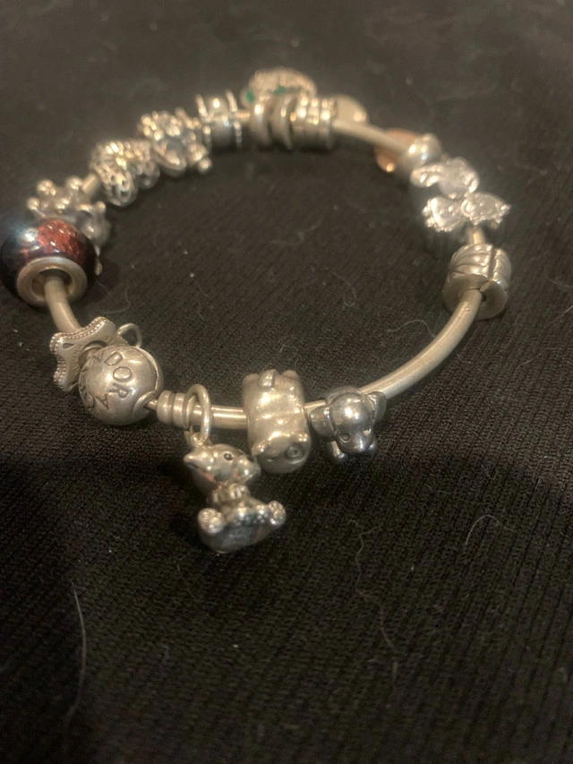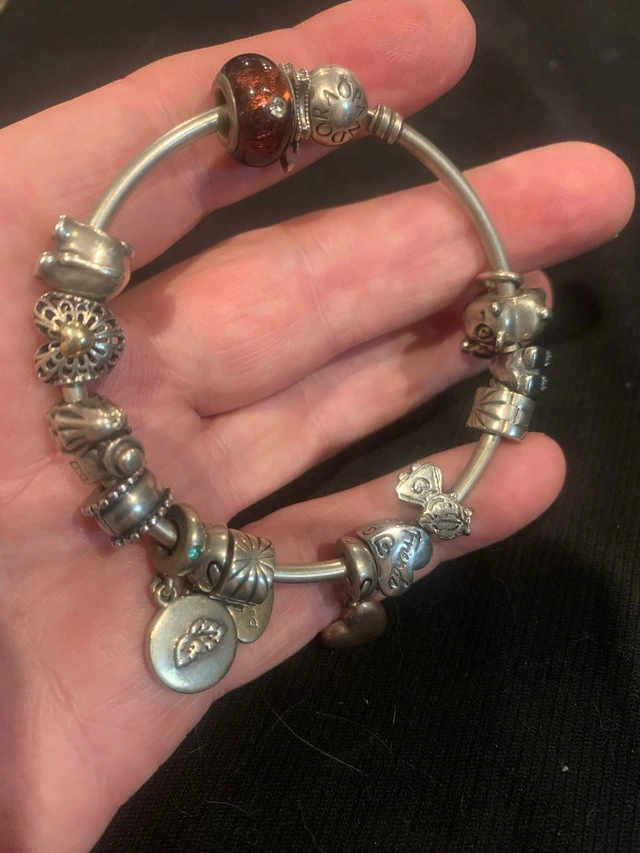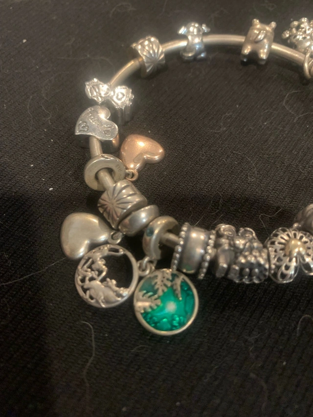 Elevate your wrist game with this charming Pandora bracelet, adorned with an array of delightful charms! This bracelet is in good condition, showcasing a mix of silver and rose gold tones that catch the eye. Here are some details you might love: * Genuine Pandora craftsmanship * Features a variety of unique charms * Secure clasp for worry-free wear I'm pricing this one at the higher end due to the quality and variety of the charms included. If you're reading this, the bracelet is still available!