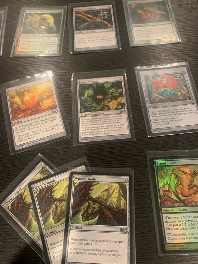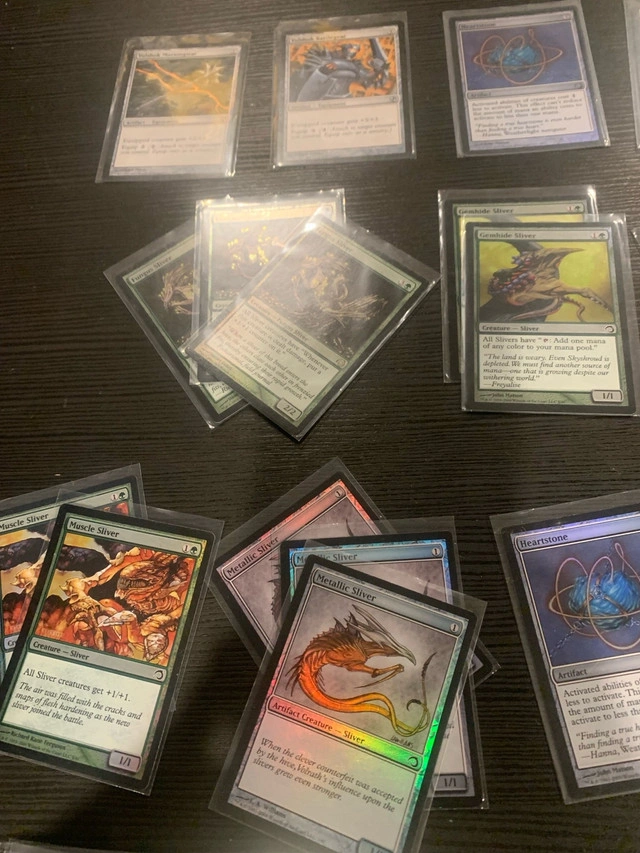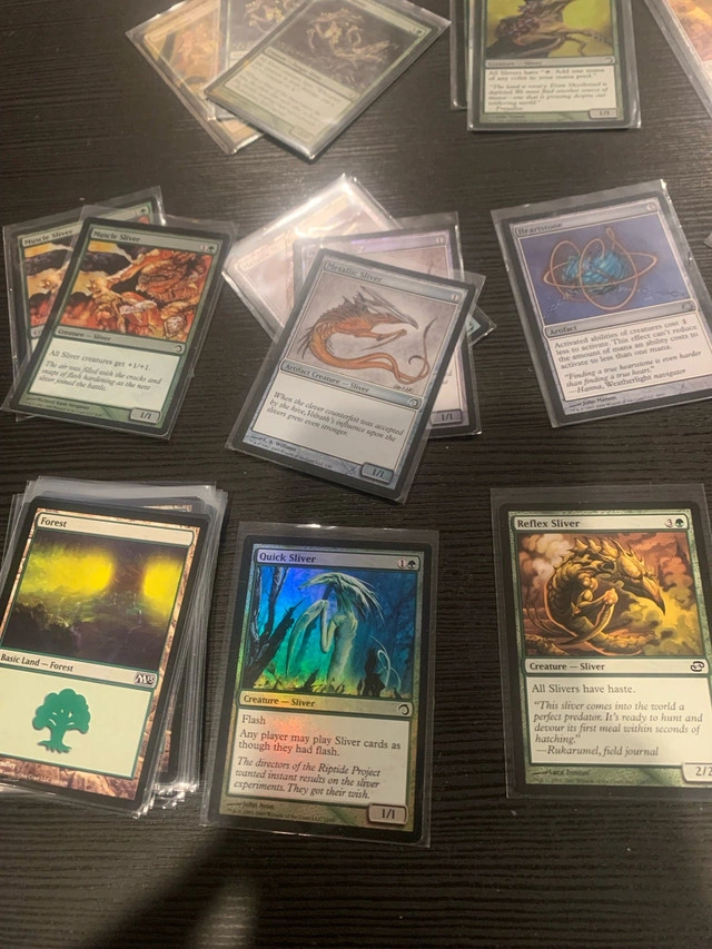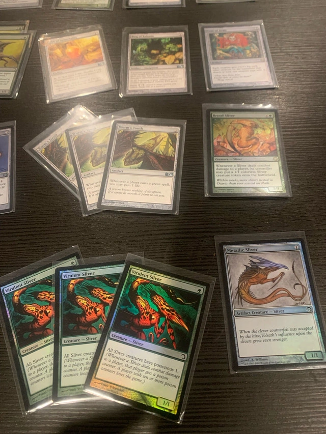 Unleash a flurry of razor-sharp claws and relentless aggression with this used, but overall good condition MTG Slivers Deck, featuring rare slivers designed to overwhelm your opponents with relentless beat downs! A formidable collection of creatures ready to dominate the battlefield. * Metallic Sliver * Virulent Sliver * Quick Sliver * Reflex Sliver * Brood Sliver * Heartstone Based on current Kijiji and eBay listings, similar MTG decks range from $80 to $150. The price is set to reflect the quality of the listed cards. If the ad is up, then the deck is ready to strike!