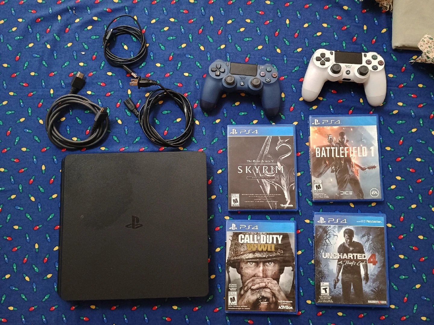 ๐ฅ Want to game without buying a console? Rent my PS4 Slim 500GB bundle and enjoy hours of fun at an affordable price! Hereโs what you get: PS4 Slim 500GB Console 2 Controllers (Black & White) โ perfect for multiplayer 3 Popular Disc Games: โข Red Dead Redemption 2 โข Call of Duty: Advanced Warfare โข Borderlands: Game of the Year Edition All wires/cables included โ just plug in and play! Full Price 250 dollars only --- ๐ฐ Rental Terms: $10 per day 5-day minimum rental ($50 total) $50 refundable deposit (returned when the console is returned in the same condition) โ Perfect for parties, weekends, or testing out PS4 gaming before buying your own. โ System is in excellent condition and works flawlessly. โ Easy pickup & drop-off. ๐ฉ Message me now to book your dates โ limited availability!