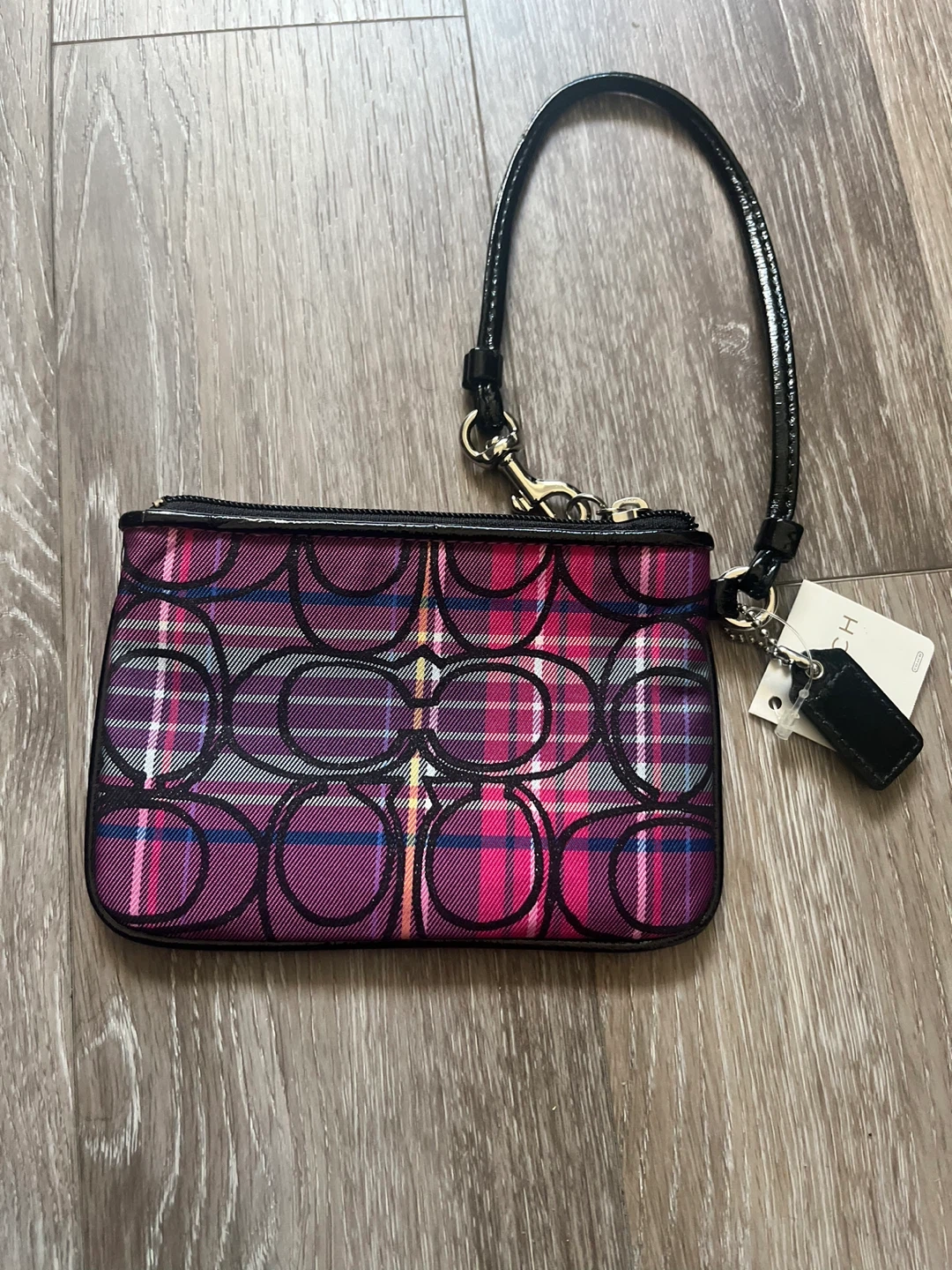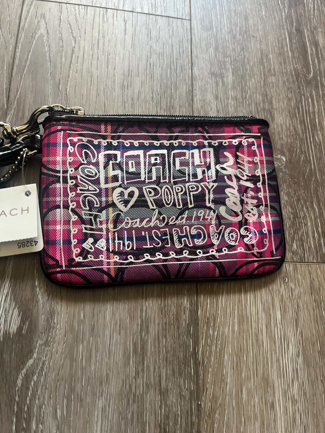 Here's a cute Coach Poppy wristlet! It features a fun, colourful plaid pattern with the Coach logo. The interior is a vibrant pink. Perfect for carrying your essentials! Brand new with tags!! Pickup Brampton or downtown Toronto Rare Vintage Y2K Coach poppy collection piece Stylish and compact, the Coach Poppy Pink Wristlet is perfect for on-the-go convenience. Featuring a vibrant pink design, this wristlet adds a pop of color to any outfit. Crafted by Coach, it combines fashion with functionality.