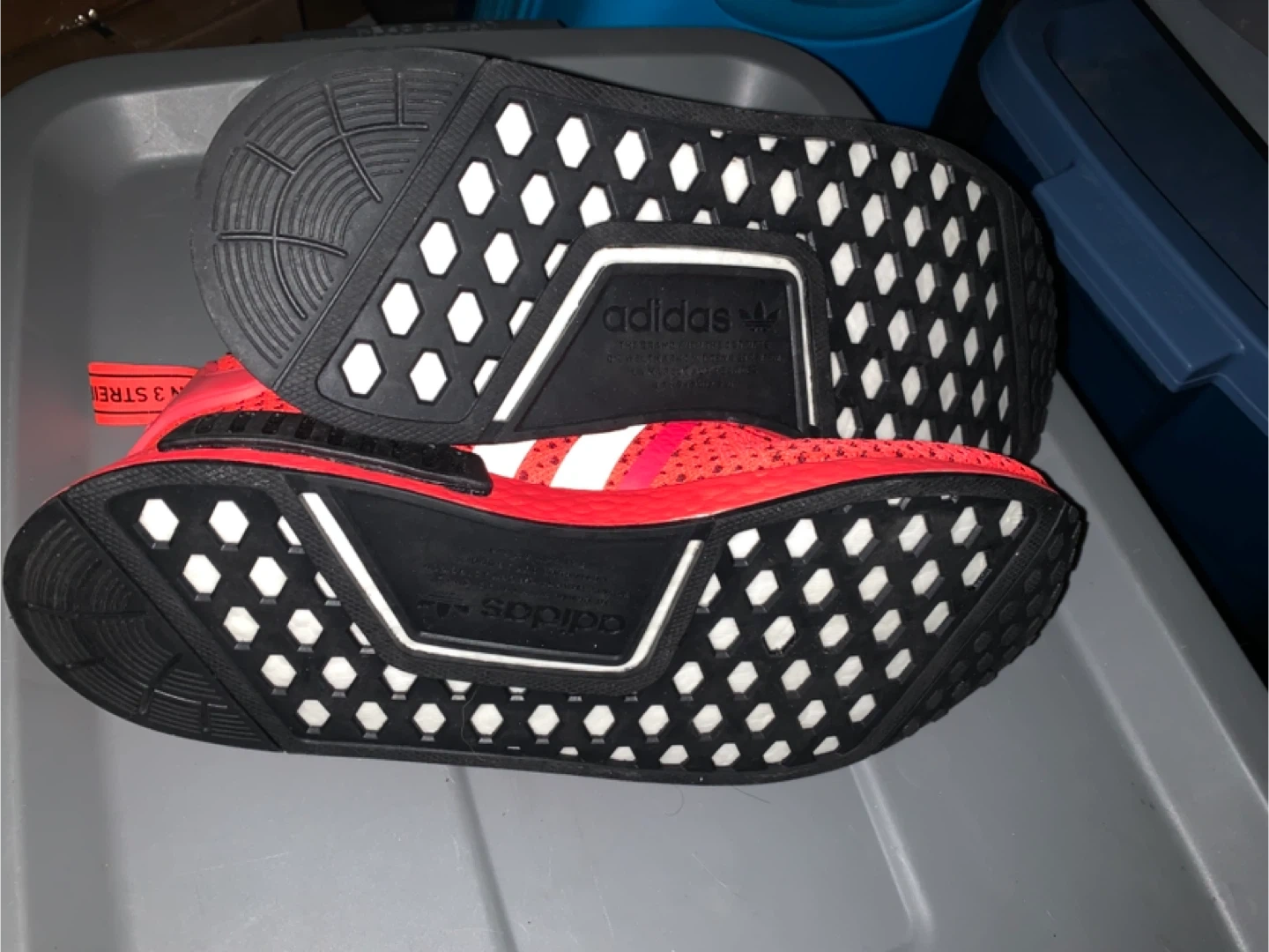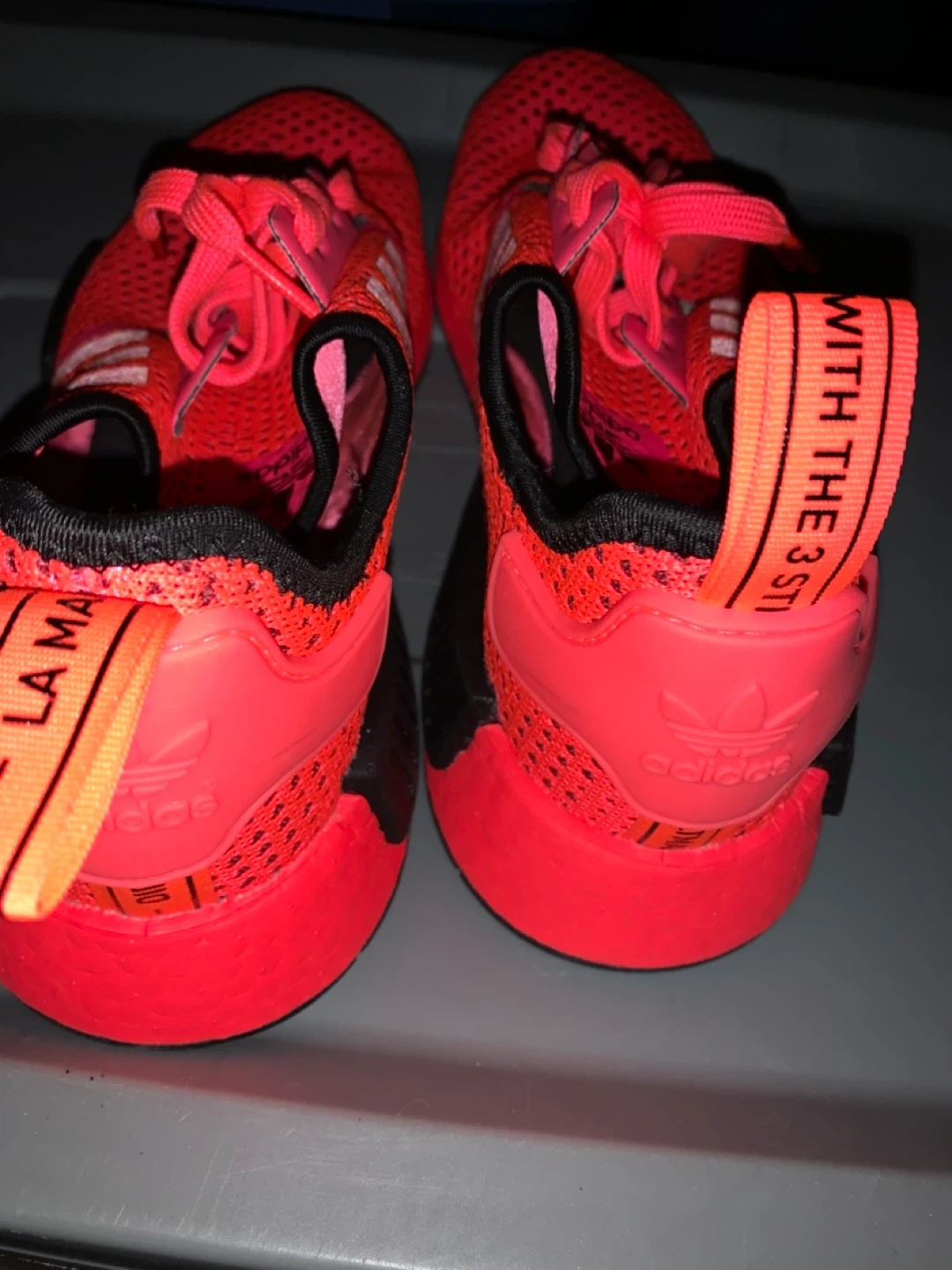 🔥 Stand out with these bold Adidas NMD R1 sneakers! Featuring a vibrant red mesh upper with reflective 3-stripes, Boost midsole for ultimate comfort, and the classic “The Brand with the 3 Stripes” pull tab. • Size: Men’s 10.5 US (44 EU, 280 JP) • Condition: Never worn/used, excellent overall condition (see photos) • Color: Bright Red/Black with reflective accents • Comfortable Boost cushioning • Authentic Adidas (Made in Vietnam, Art FV1740) 💯 Perfect for casual wear, gym, or street style.