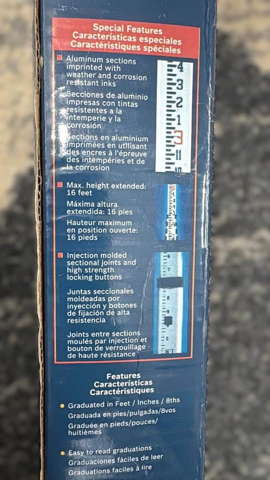 Heavy-Duty 16ft Aluminum Telescoping Leveling Rod – Durable & Lightweight New in box Pickup is in Ajax, close to harwood bayly intersection. Maximum extended height: 16 ft, graduated in feet/inches/8ths Aluminum sections imprinted with weather- and corrosion-resistant inks Self-leveling compensator for accurate measurements Injection-molded sectional joints with high-strength locking buttons Lightweight and durable aluminum alloy, easy to carry and use Ideal for construction, surveying, layout, and precision measurement tasks Professional-grade tool for jobsite efficiency and reliability aluminum telescoping rod, 16ft leveling rod, measuring rod, layout tool, surveying rod, telescopic leveling rod, lightweight aluminum rod, durable measuring pole, self-leveling rod, precision measurement tool, construction rod, professional leveling rod, high-strength aluminum rod, weather-resistant measuring rod, corrosion-resistant leveling pole, portable telescopic rod, jobsite tool rod, multi-purpose measuring rod, industrial surveying tool, extendable aluminum rod