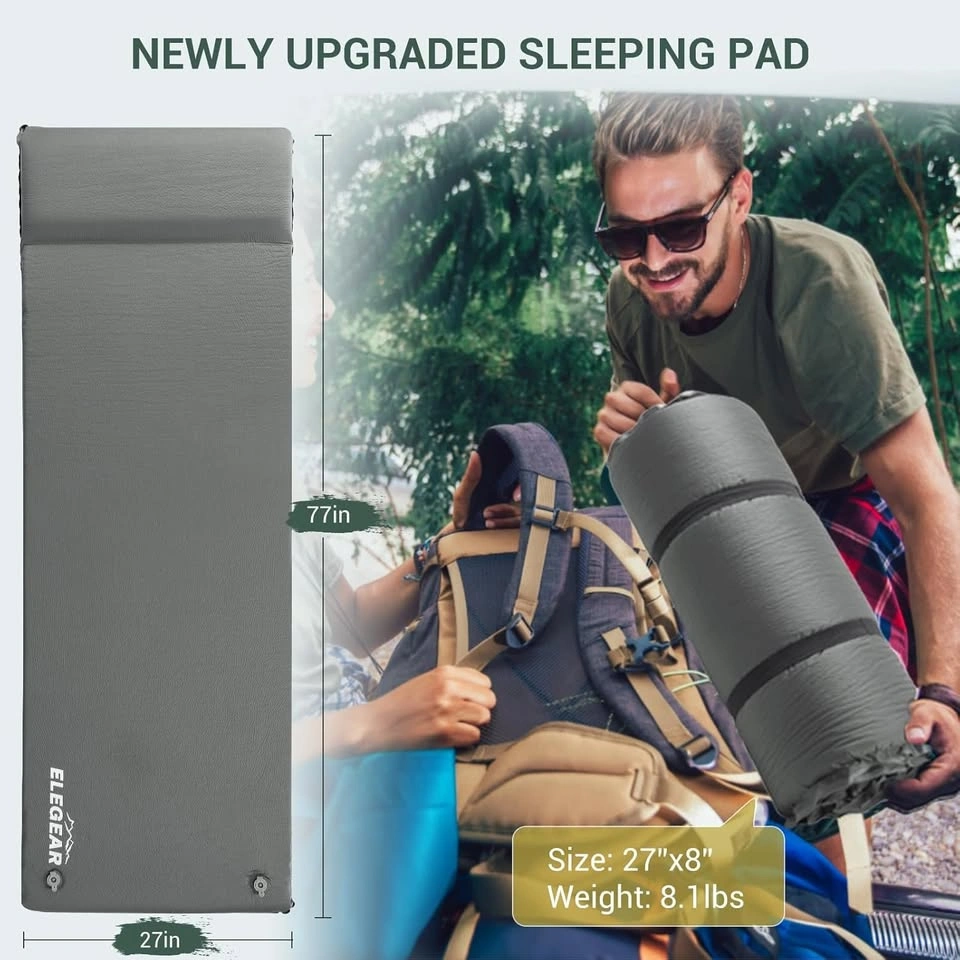 Ultra-Comfort Memory Foam Camping Pad New in box Pickup is in Ajax, close to harwood bayly intersection. Thick 3.1" high-density memory foam for ultimate comfort Extra supportive 26D foam, weight capacity up to 800 lbs Built-in pillow for added convenience Large size: 77"L x 27"W (roomy and supportive) Compact fold size: 27" x 8", weighs 8.1 lbs Fast self-inflating with 2-valve system, no pump needed 9.5 R-value insulation, suitable for 4 seasons use Made with durable 50D knit fabric + waterproof TPU Quiet, tear-resistant, moisture-wicking surface Great for camping, cots, car trips, and guest sleeping