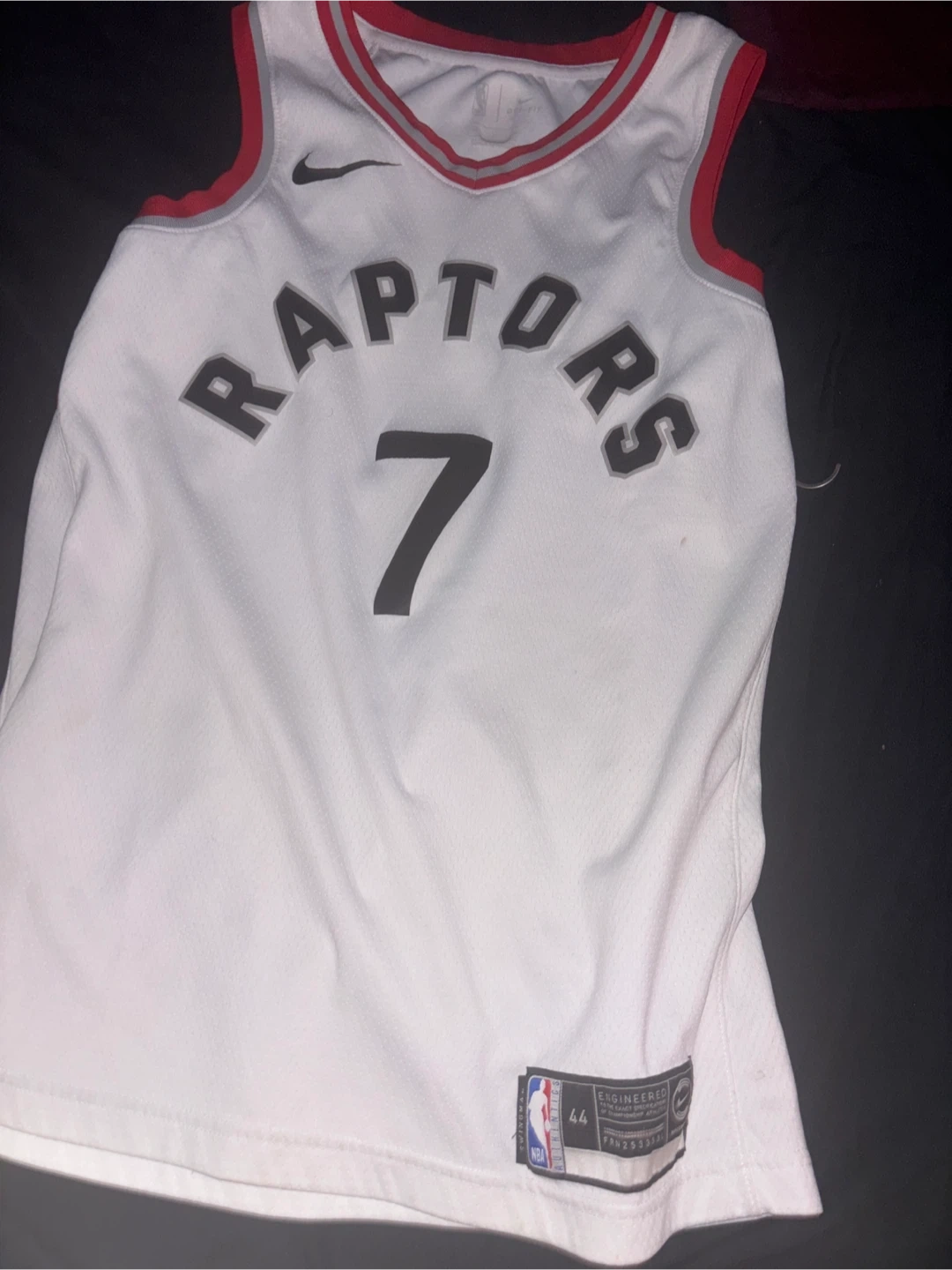 Selling a Nike Raptors jersey in size 44. It's white with the number 7 on it. Great for any Raptors fan!