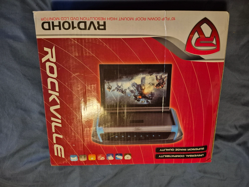 Selling a Rockville RVD10HD 10" Flip Down Roof Mount High Resolution DVD LCD Monitor. It has universal compatibility and superior image quality. Box is included!
