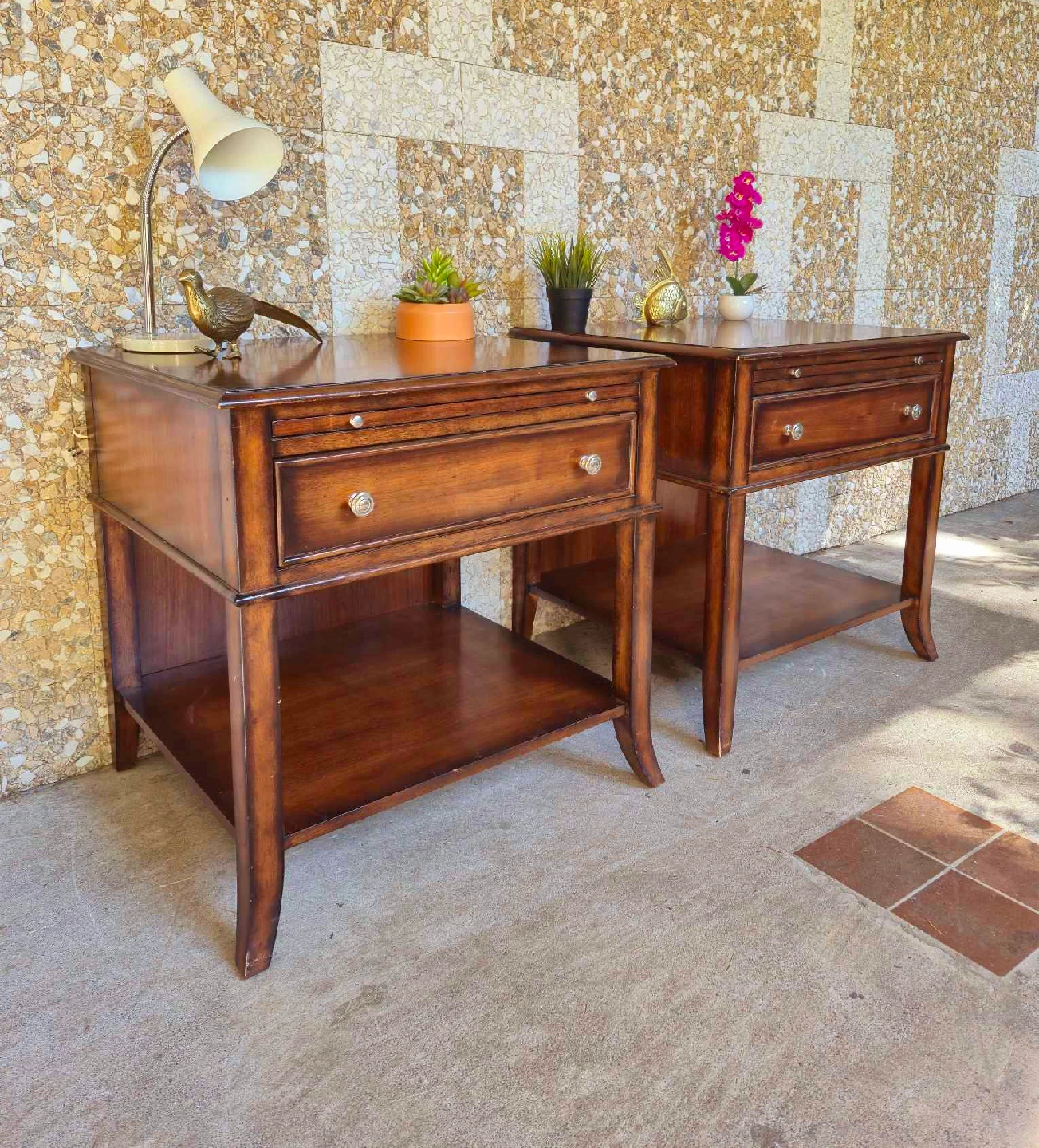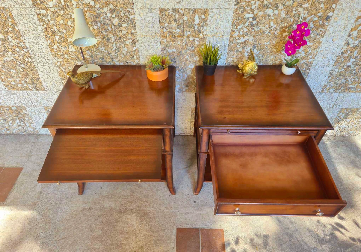 Pair Of Solid Walnut Nightstands With Single Drawer And Pullout Tray Price is for both. 28 inch width x 24 inch depth x 28 inch height Delivery Available Pick up in downtown Vancouver or delivery may be arranged for a reasonable fee. Tags: retro vintage Scandinavian mcm mid century modern design furniture wesnofa Norway Denmark Danish Scandi Sweden teak walnut rosewood mahogany Bentwood Hans Wagner Hans Olsen sofa table coffee table designer solid wood westendtrends furniture film set dec vanvaluevintage local canada